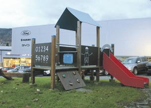 Ved rasteplassen har dei minste fått nytt leikeapparat. Foto: Styrkmedia AS