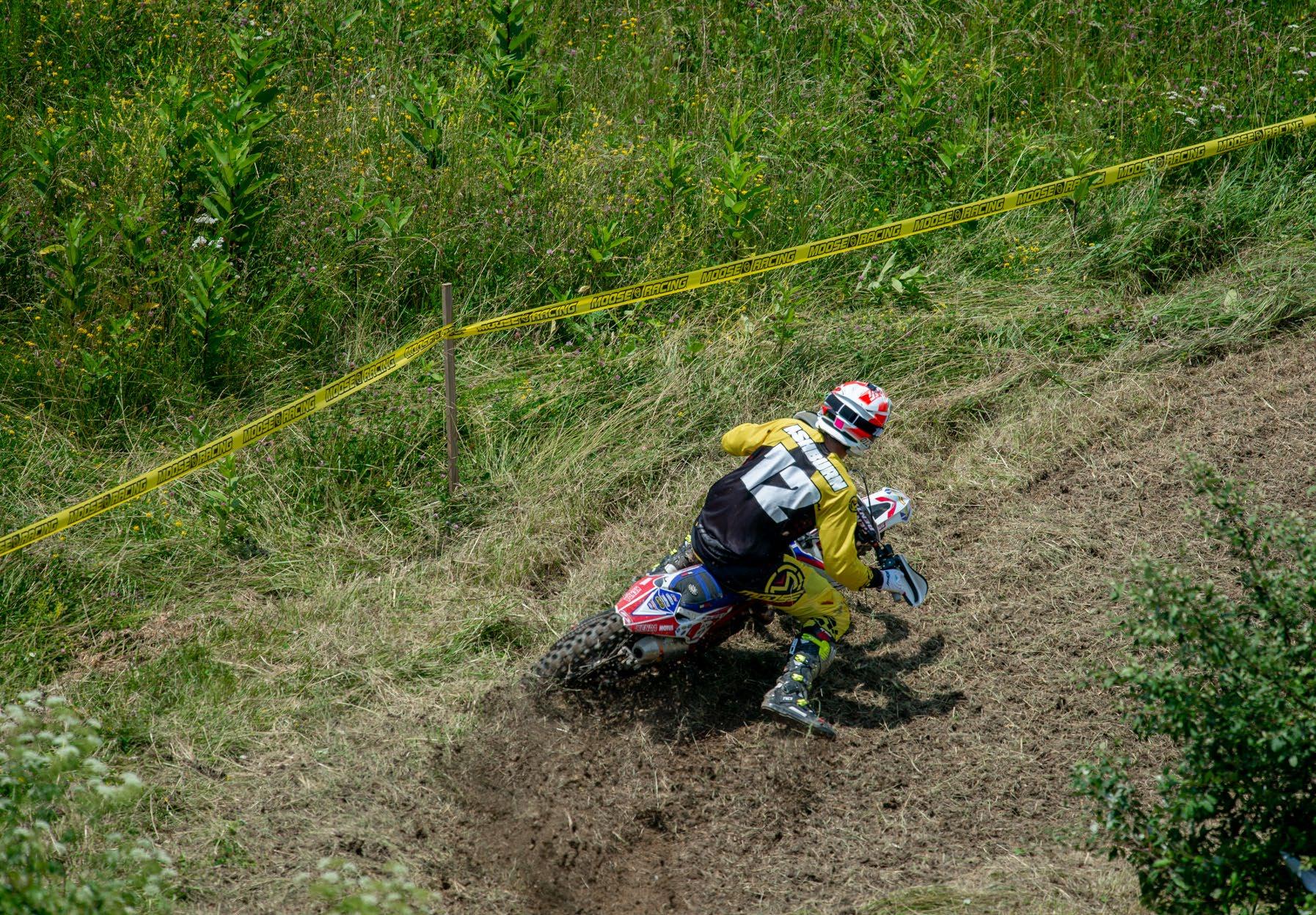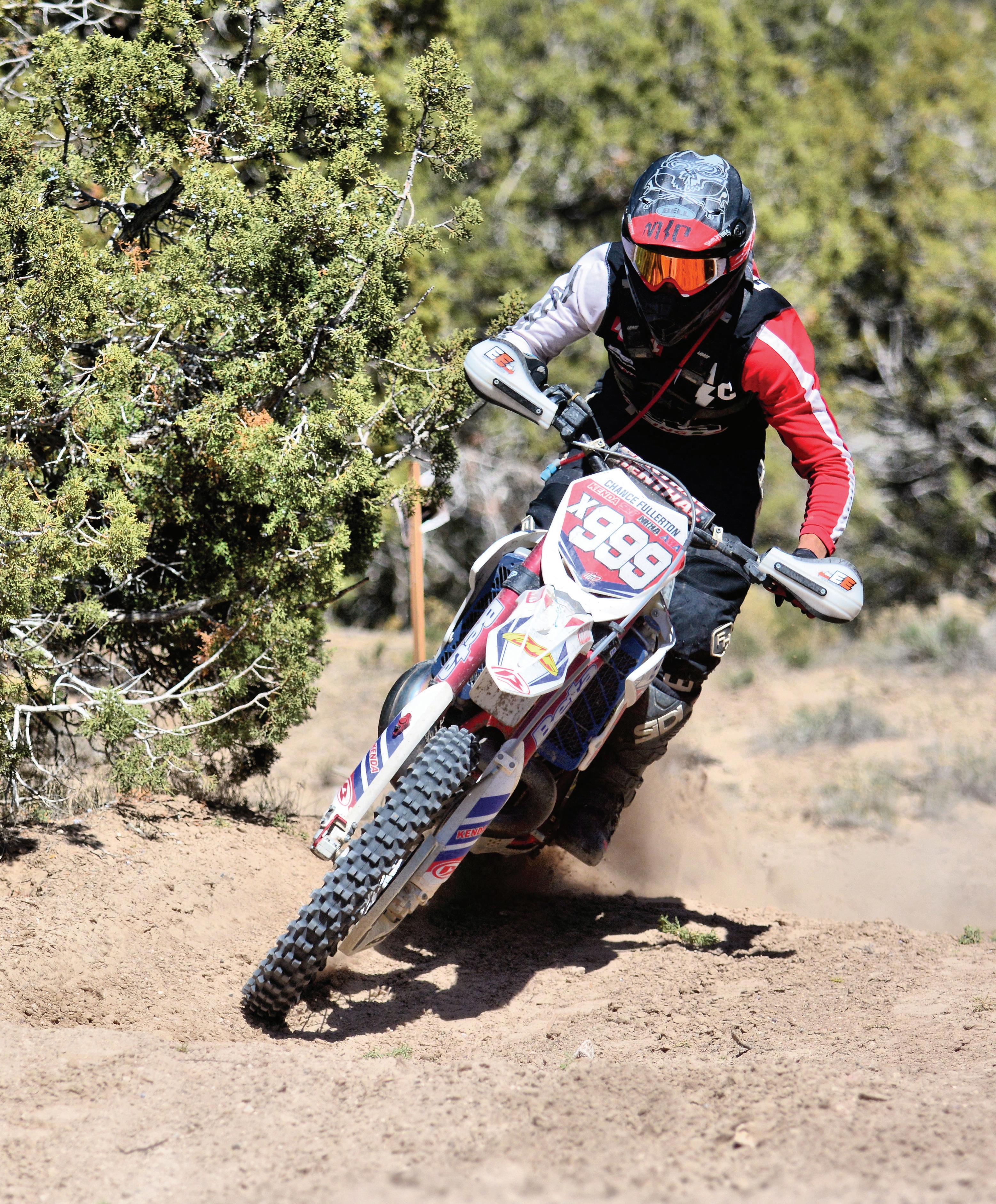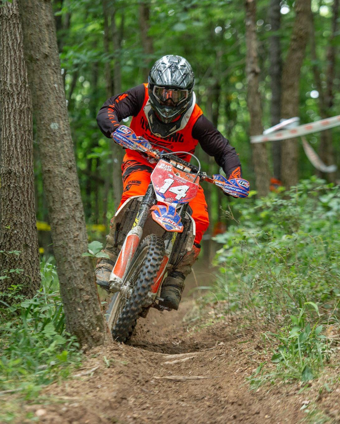 Cory Buttrick stands out against a beautiful blue sky en route to fifth overall at the recent Jolly Mine Full Gas Sprint Enduro in Wellston, Ohio. Buttrick is an Ohio boy so he was performing for a partisian crowd.