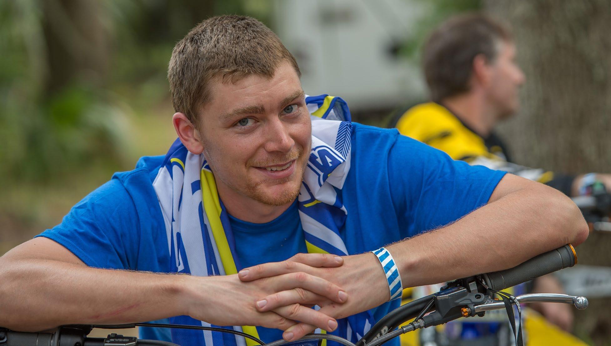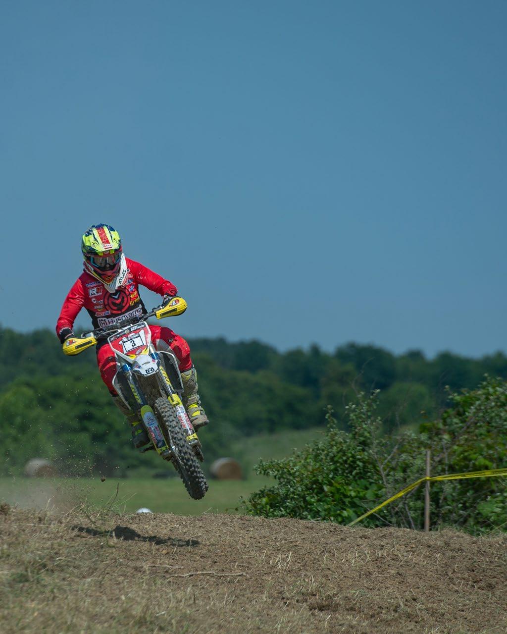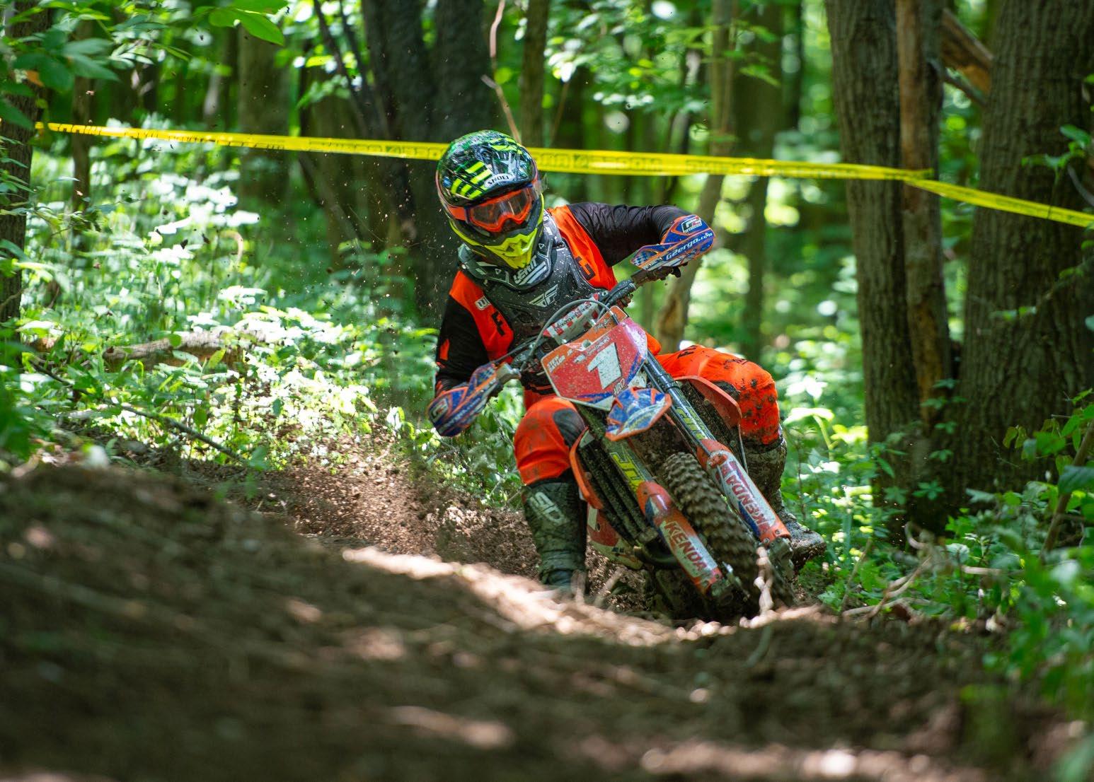 Cory Buttrick stands out against a beautiful blue sky en route to fifth overall at the recent Jolly Mine Full Gas Sprint Enduro in Wellston, Ohio. Buttrick is an Ohio boy so he was performing for a partisian crowd.