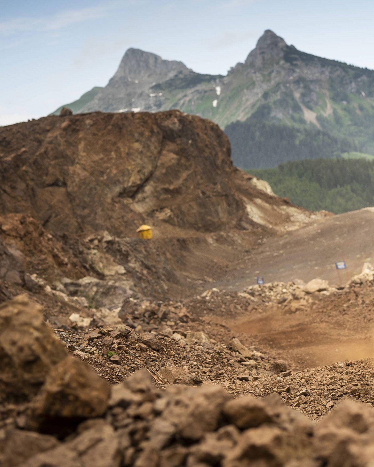 Adam Raga peers from under his handlebar to get a look at what’s next after splattering up a rock face at the Japanese round of the TrialGP in Motegi, Japan.
