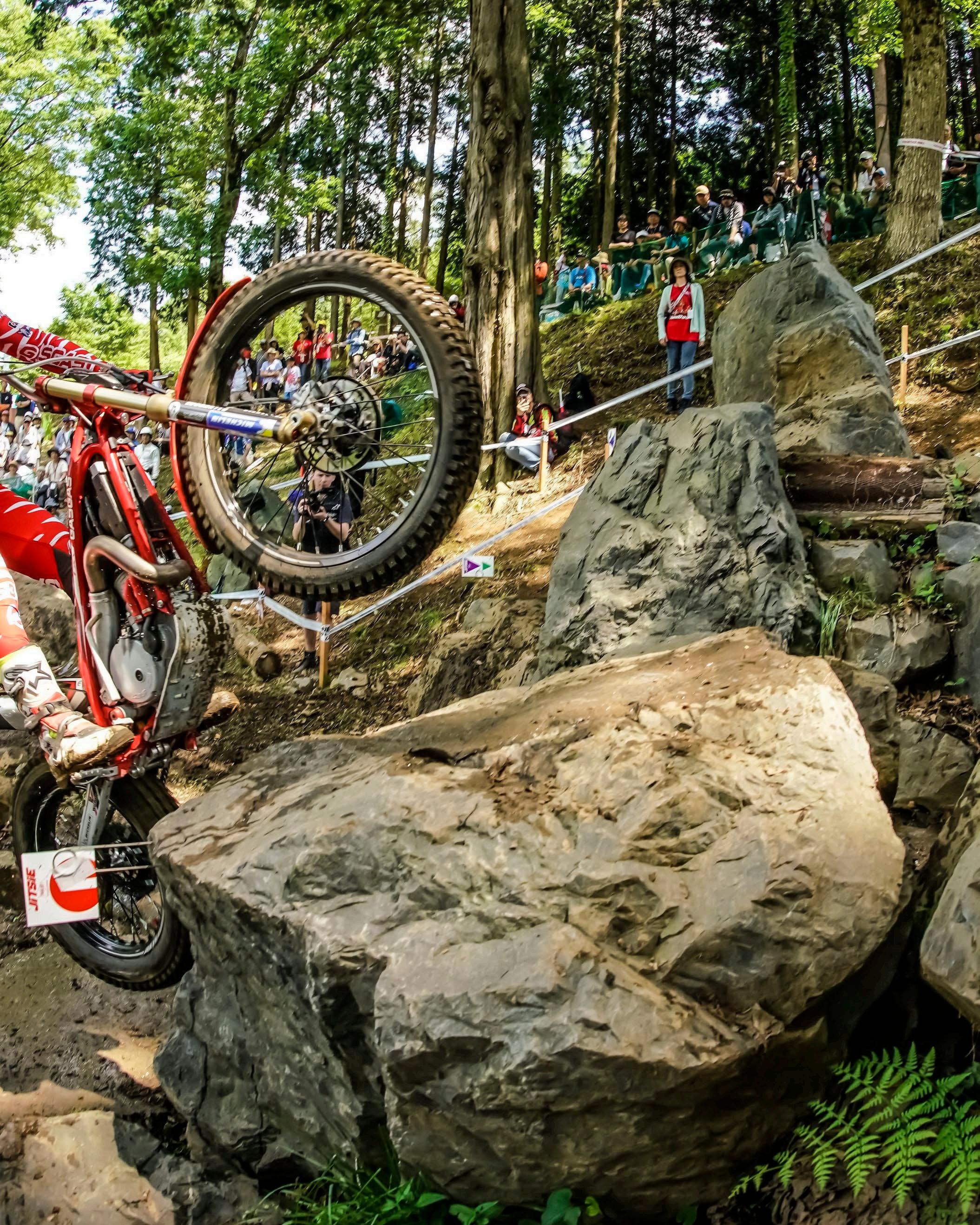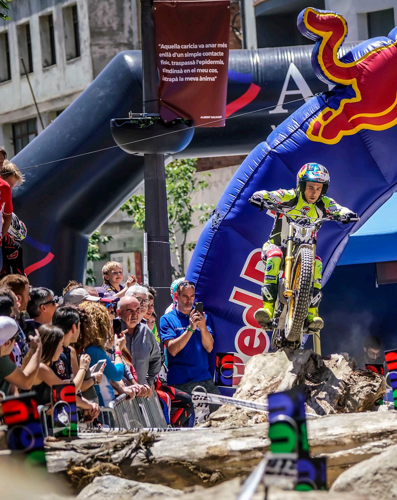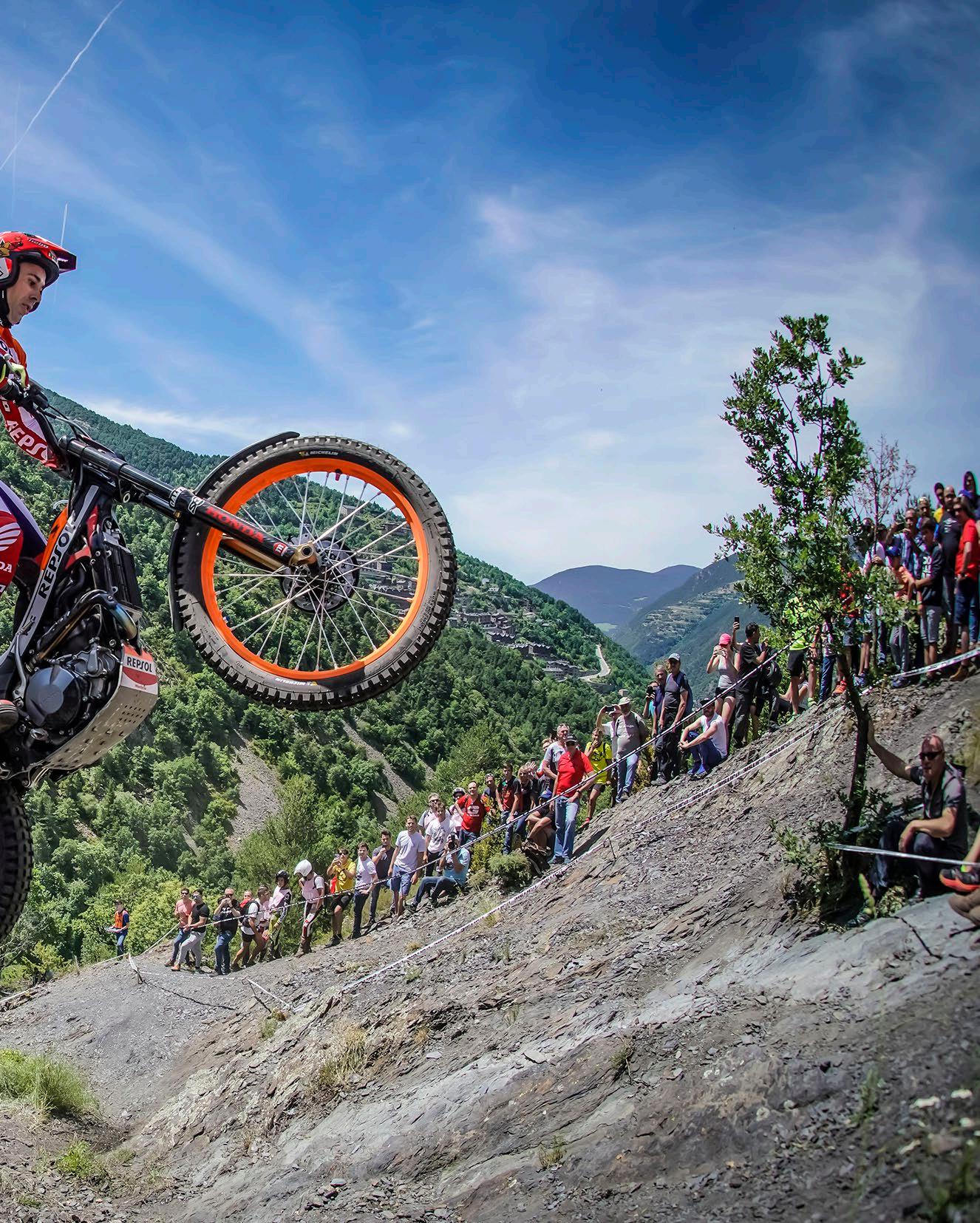 Toni Bou gives the fans something to cheer about as he performs just inches away from the masses at the recent TrialGP in Andorra, where the Repsol Honda rider claimed his 99th career victory in the series.