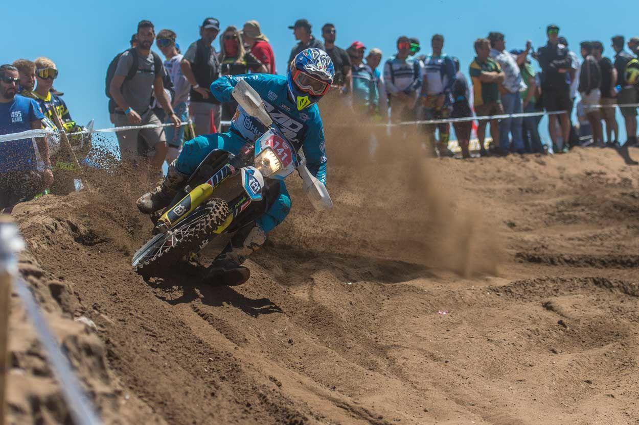 Ryan SIpes makes a mid-course correction during the opening test on Day 4 t the International Six Days Enduro in Vian del Mar, Chile. Sipes ran near the top until a day-2 crash slowed him.