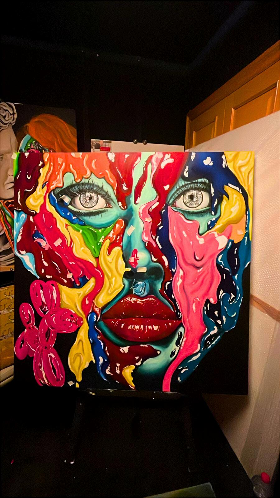 Cada color encarna una vivencia: una herida, una celebración, un amor, una pérdida, un aprendizaje Son huellas del tiempo que, al mezclarse sin lógica aparente, construyen rostros y presencias femeninas cargadas de historia, sensibilidad y fortaleza Porque así es como yo veo a las mujeres: como universos complejos y extraordinarios, formados por capas de experiencia que se entrelazan en una armonía imperfecta