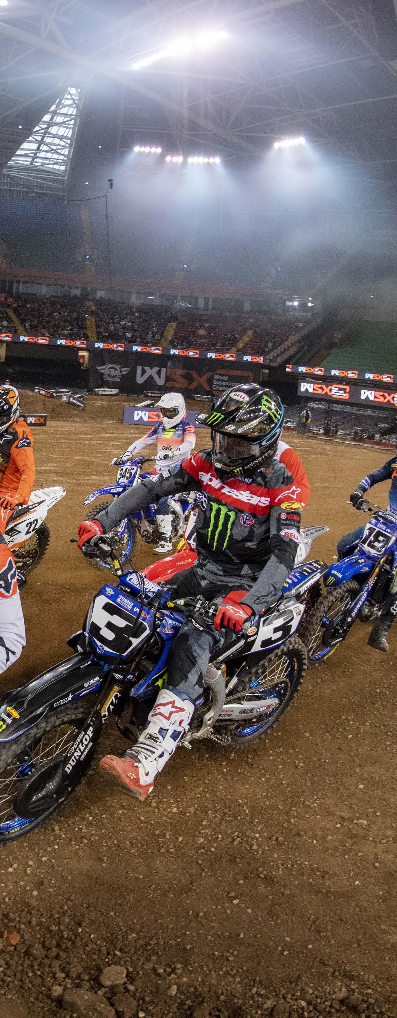 La ronda de apertura del nuevo Mundial de Supercross dio el puntapié inicial el pasado 9 de octubre en Cardiff, Gales. Cuarenta pilotos de 10 equipos oficiales brindaron un gran espectáculo plagado de acción bajo las luces del Principality Stadium, donde se desataron múltiples batallas gracias al formato de tres Main Events dispu tados en cada categoría. Al final, Eli Tomac y Shane McElrath se alzaron como los vencedores en sus respectivas divisiones, aunque por cami nos muy diferentes. Tomac arrasó en SX1 con absoluta jerarquía al dominar cada Main Event, mientras que McElrath emergió desde el caos como el ganador de la prueba ante las irregula ridades de sus rivales de SX2.