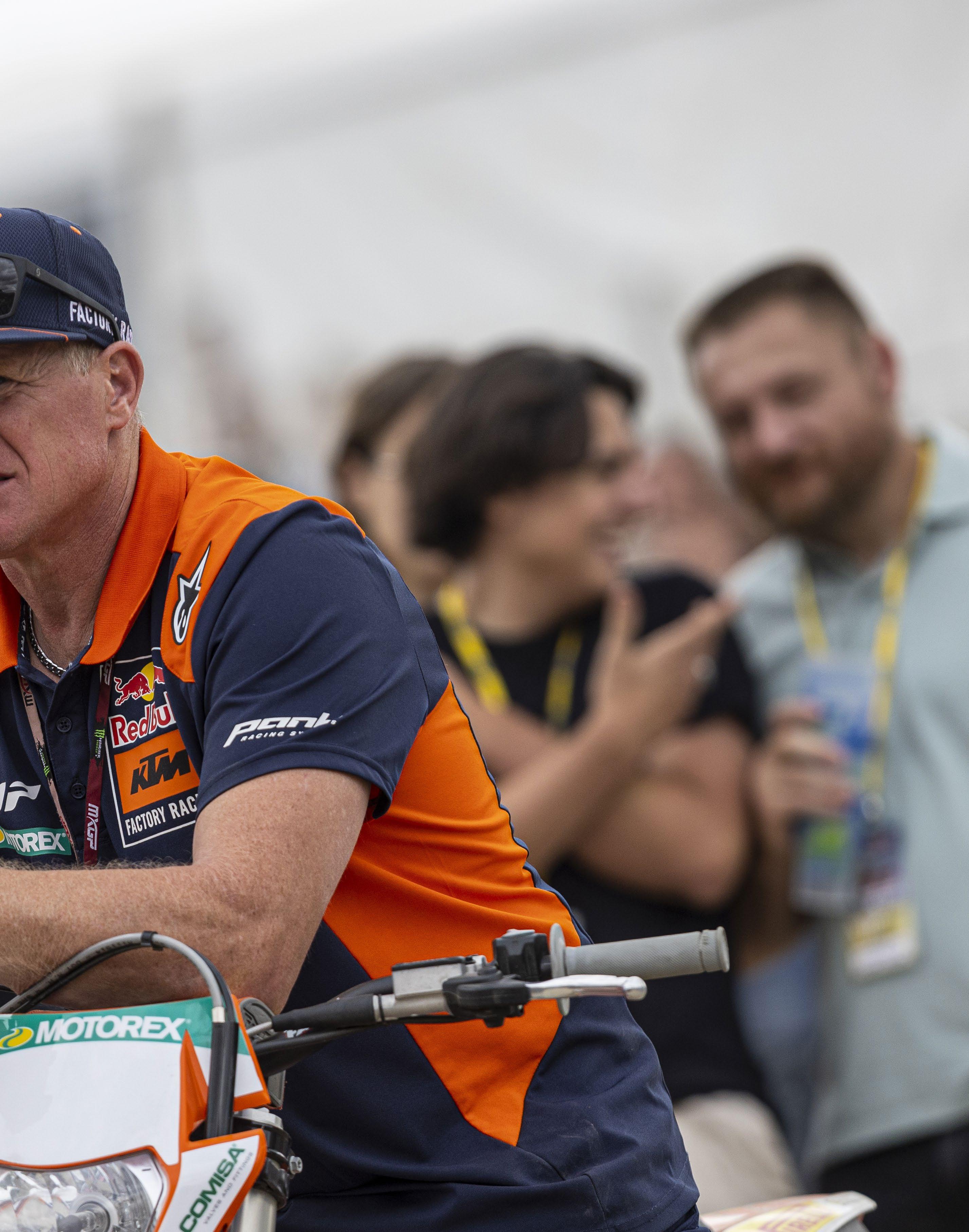 más difícil en comparación con Musquin, Herlings o Cairoli. Pero no me quiero llevar todo el mérito, también todo el equipo alrededor tiene que ver. Creo que la clave del equipo es que no tenemos un propietario como tal. Nuestro “jefe” está en Austria, y nosotros nos las arreglamos para poner a los pilotos en lo más alto del podio. Estamos pagados por KTM Austria y estamos todos empeñados lograr lo mejor para el grupo.
