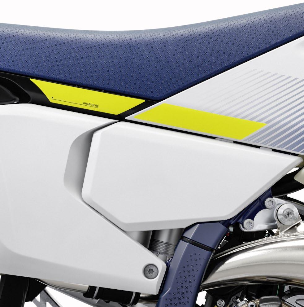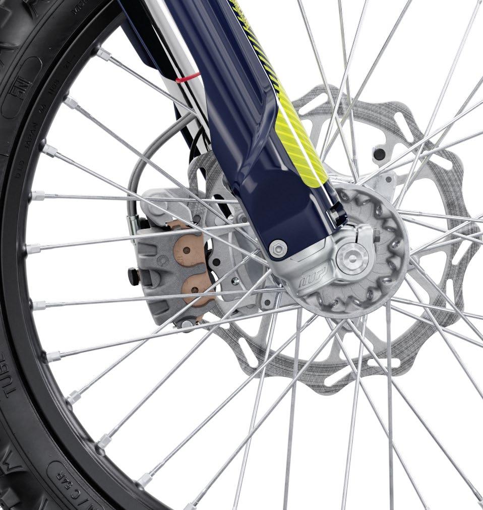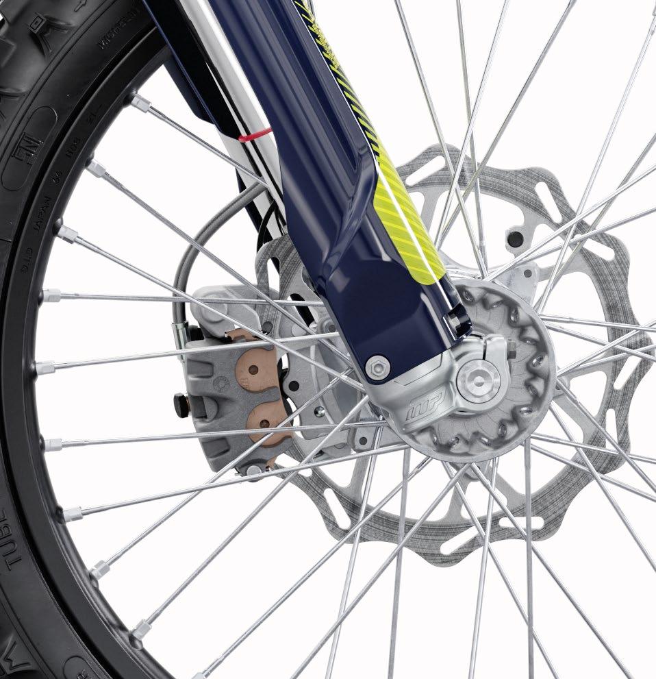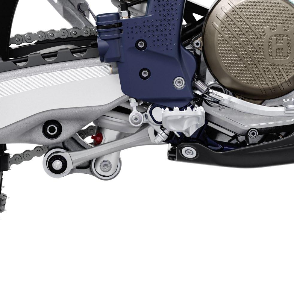 Husqvarna continúa empleando componentes Braktec para los sistemas de frenado en estos modelos, pero también son nuevos para 2024, además de las pinzas, el compuesto de la pastilla y la compensación y la geometría de la palanca delantera. Los elementos nuevos adicionales incluyen la caja de aire, el tanque de combustible, la placa protectora, el caballete y el protector de cadena y el control deslizante. Todos los modelos cuentan también con un interruptor de arranque/parada del motor en el lado derecho del manillar.