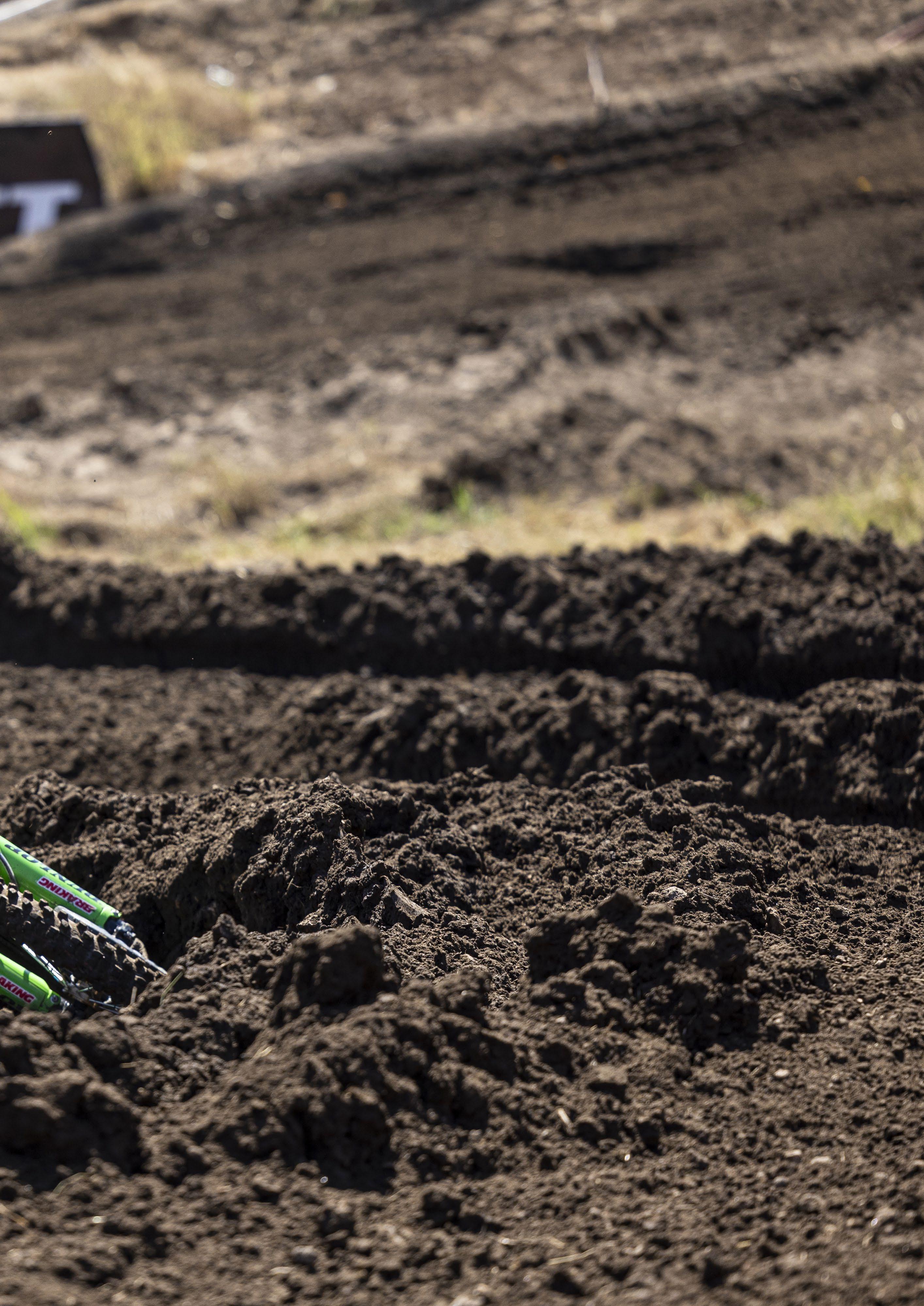 En tests anteriores en los que había tenido la oportunidad de probar la RM Z-450, siempre me había encantado la manera girar y la manejabilidad del bastidor, situándola incluso entre las mejores frente a sus competidoras. Fue subirme a ella y sentirme rápidamente muy a gusto, con sensaciones muy agradables en gran parte del circuito, especialmente en esos puntos del trazado en los que llegas muy rápido e impactas fuerte con el apoyo y donde parece que el chasis se retuerce para colocarse dentro de la rodera o peralte en cuestión. Además, la sensación de estrechez cuando estás montado en ella acentúa aún más la sensación de manejabilidad. No obstante, el bastidor se muestra más inestable y movedizo en las partes del circuito más rápidas.