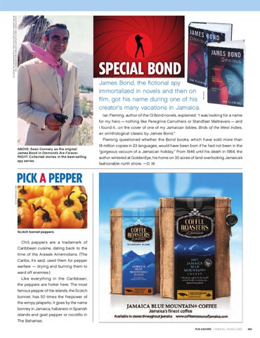 SPECIAL BOND Ian Fleming, author of the 13 Bond novels, explained: “I was looking for a name for my hero — nothing like Peregrine Carruthers or Standfast Maltravers — and I found it…on the cover of one of my Jamaican bibles, Birds of the West Indies, an ornithological classic by James Bond.” Fleming questioned whether the Bond books, which have sold more than ABOVE: Sean Connery as the original James Bond in Diamonds Are Forever. RIGHT: Collected stories in the best-selling spy series.