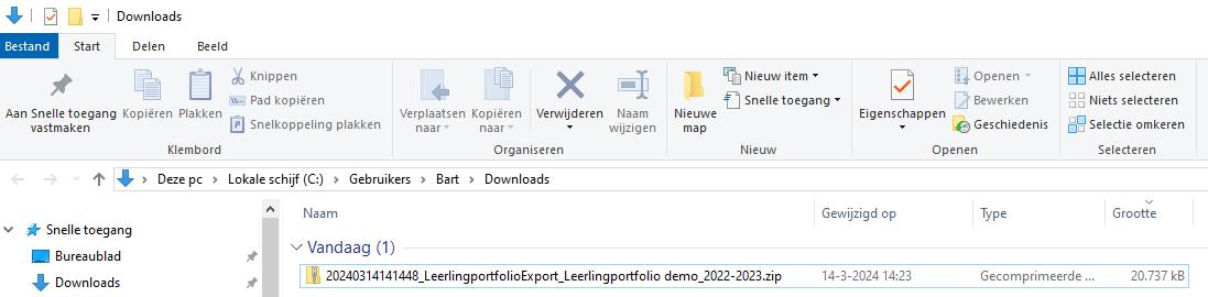 Een export van een portfolio is per schooljaar te downloaden. De export kan op aanvraag klaargezet worden. Het advies is om te exporteren wanneer een schooljaar volledig afgerond is.