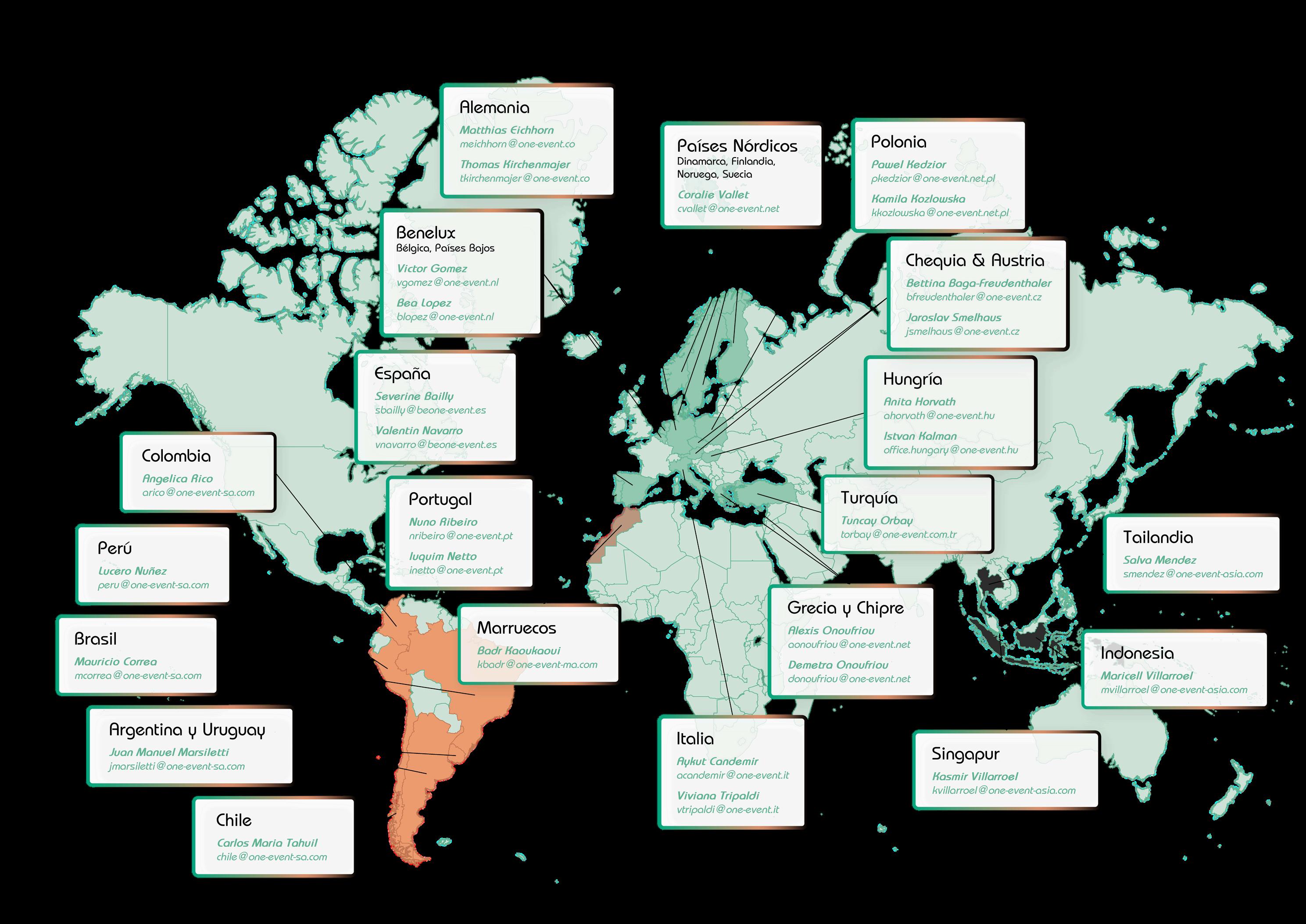 ONE Event reúne a empresas privadas de diversos destinos bajo una sola marca, lo que garantiza coherencia internacional y una calidad de servicio excepcional A través de una asociación compartida y un código comercial unificado, garantizamos que cada aspecto de nuestro trabajo refleje los mismos altos estándares, sin importar la ubicación o la complejidad del evento. Esta estructura cohesiva nos permite ofrecer una excelencia consistente, al tiempo que aprovechamos las fortalezas únicas de la experiencia local.