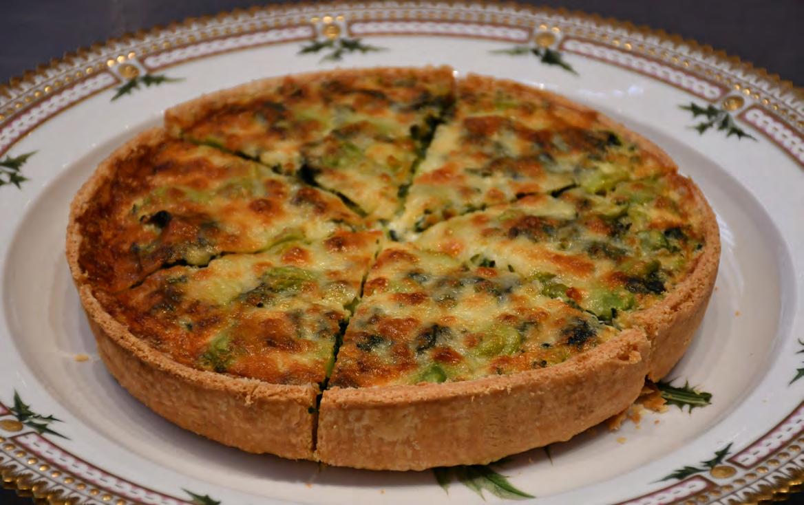 After baking for 25 minutes, the quiche looked roughly like the one in the official Palace picture (although perhaps not quite as neat). But, what did it taste like?