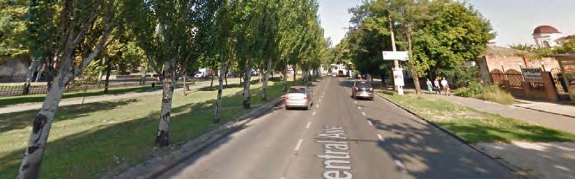 One of the major challenges of the current road network is the lack of bypass roads. This results in a situation where heavy freight trucks travel through the city centre, causing traffic congestions and degrading the existing road network. Additionally, there are no traffic limited or speed-limit zones for heavy vehicles. Wide traffic lanes on some roads encourage highspeed driving. Changes and improvements in road design are required, i.e. to ensure pedestrian safety. However, several opportunities can be leveraged to improve the road network. Mykolaiv is not predominantly reliant on cars, with only 16% of the city’s modal share being private car usage. Previous proposals by the Japan International Cooperation Agency, PADECO Co., Ltd., and Pacific Consultants Co., Ltd., for a new bridge and bypass road aim to redirect freight traffic from the city centre to the ports. Some areas have ample roads and sidewalks that can be redesigned to include dedicated public transport and cycling lanes. Additionally, roads in peripheral areas, marked by undefined spaces and low traffic volumes, offer an opportunity to be repurposed as shared roads and public spaces.