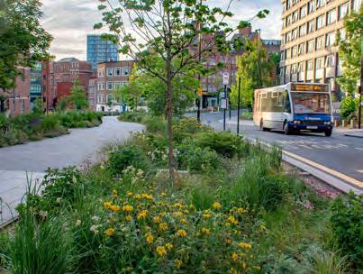 The road network strategy includes upgrading and downgrading roads, improving pavement and signage, and replacing tram tracks with greenery or dedicated public transport lanes. The road network strategy promotes sustainability and flexibility by prioritising public transport while fostering a safer and more pedestrian-friendly urban environment.