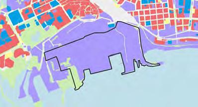 area of the current port near the city centre, which is identified for future regeneration, features minor railway tracks that could be repurposed into new public spaces.