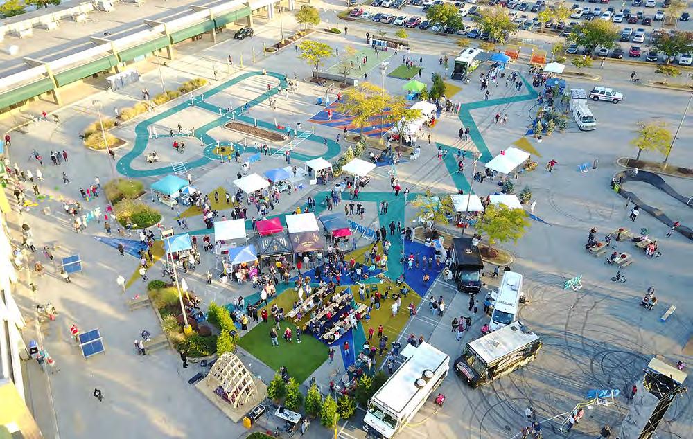 A dedicated chapter explores the adaptable and flexible reuse of transport infrastructure, offering benchmarks for strategies like temporary street closures to provide space for community events and car-free Sundays to encourage cycling. Parking area repurposing transforms parking spaces into functional public areas, such as pop-up parks, outdoor dining, or community spots. Tactical urbanism initiatives involve improvements like seating areas, painted sidewalks, parklets to test new ideas and engage the community, and address public space needs flexibly. Through these comprehensive strategies, the Mykolaiv Concept Master Plan aims to create a more efficient, sustainable, and liveable urban environment aligned with the city’s overall goals and vision.