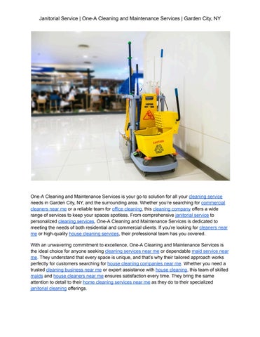 One-A Cleaning and Maintenance Services in Garden City, NY, is dedicated to making your home or business shine! As a trusted cleaning service, we specialize in professional office cleaning, reliable janitorial services, and expert care for businesses of all sizes. If you're searching for commercial cleaners near me, our team delivers top-notch results, ensuring a spotless and welcoming environment for your staff and clients. From daily upkeep to customized cleaning plans, we prioritize quality and customer satisfaction. Contact us today for a cleaner tomorrow!