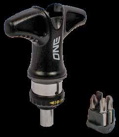 Nylon injected plastic, heavy duty, high torque design, stash compartment for bit storage, chrome bits. Snowboard-specific Phillips #3 and #2, Phillips #2 and Flathead.