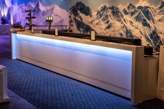 Vi er eksperter indenfor specialtilpassede barløsninger, så uanset om I bliver 40, 400 eller +4.000, så har vi et setup der passer – og der er også masser af muligheder for branding, udfromning, lyssætning, teamer og forskellige designs.