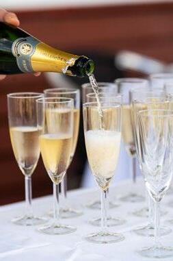 Bobler v/ankomst: Gående personale m/champagne kjoler