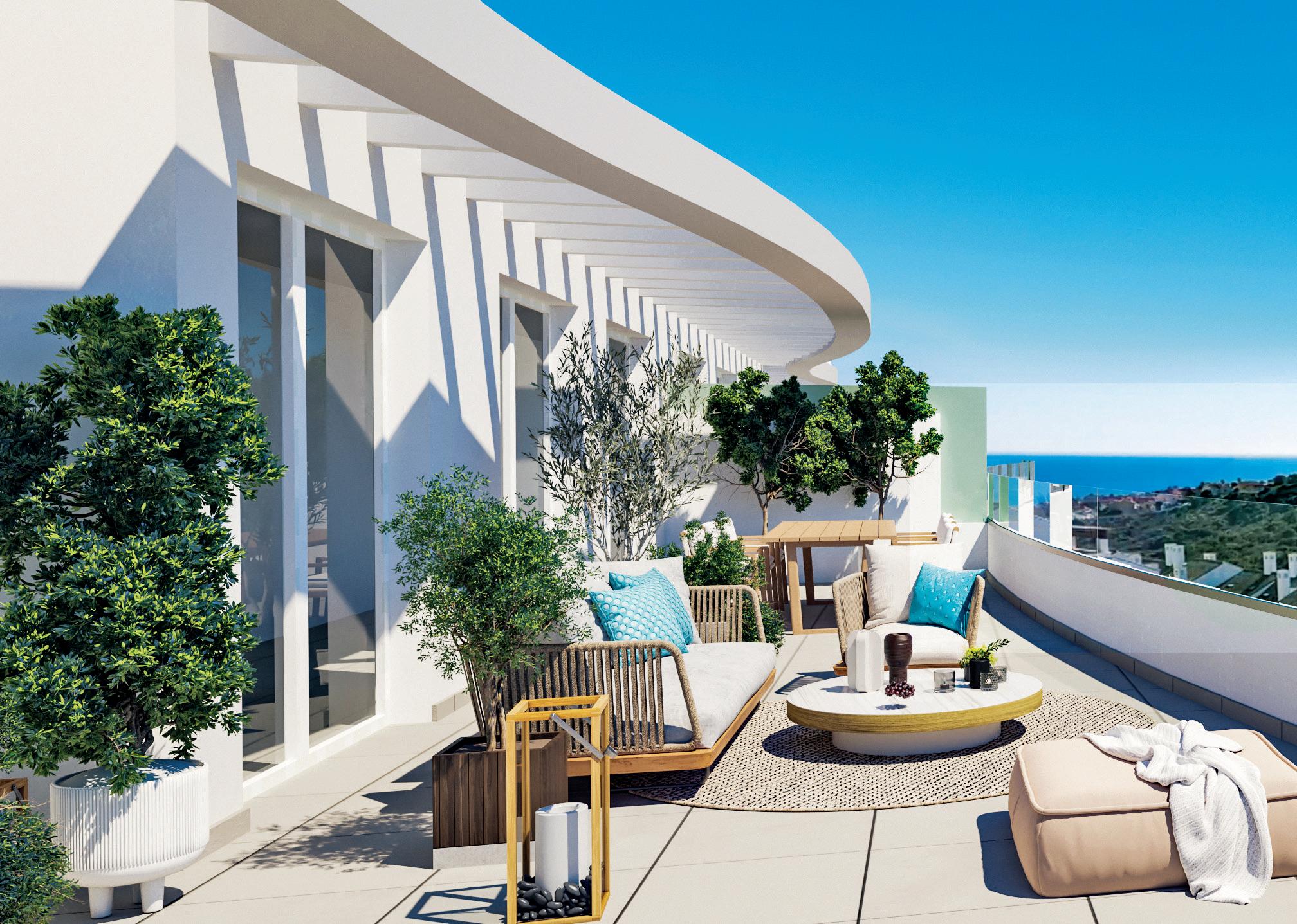 Nuestros modernos apartamentos de 1, 2, 3 y 4 dormitorios estarán situados en un exuberante y verde oasis paisajístico que fomentará sensación de bienestar y ofrecerá unas vistas inigualables a través del campo de golf hacia el mar mediterráneo o hacia las montañas.