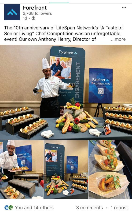 Forefront is a specialized culinary and support services company serving mission driven organizations in healthcare, senior living, education and government throughout the United States. Forefront creates healthy, nourishing foods and maintains clean, safe and resilient environments that enhance the lives and communities they serve. For more information about Forefront’s culinary services, environmental services, and facility management, visit www.oneforefront.com.
