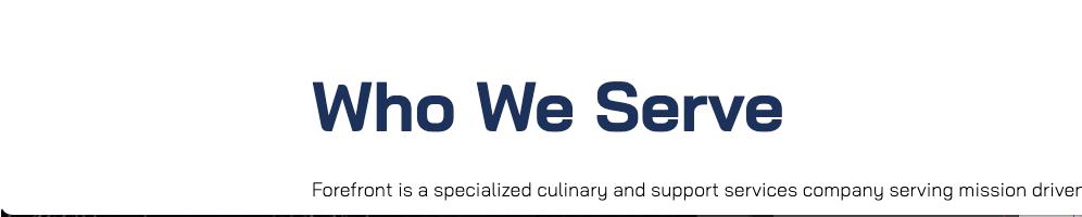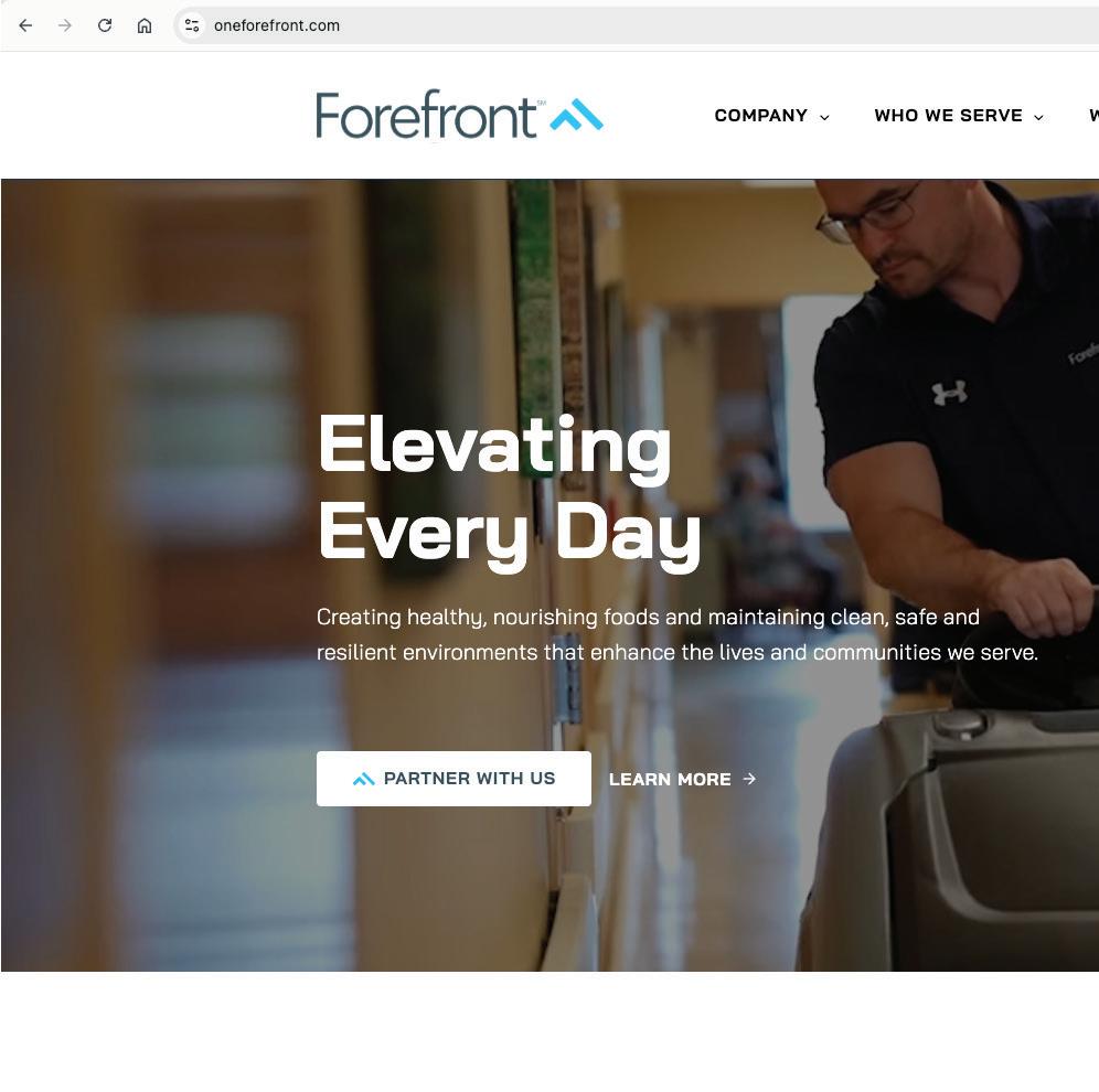 Forefront is a specialized culinary and support services company serving mission driven organizations in healthcare, senior living, education and government throughout the United States. We create healthy, nourishing foods and maintain clean, safe and resilient environments that enhance the lives and communities we serve. For more information, visit www.oneforefront.com.
