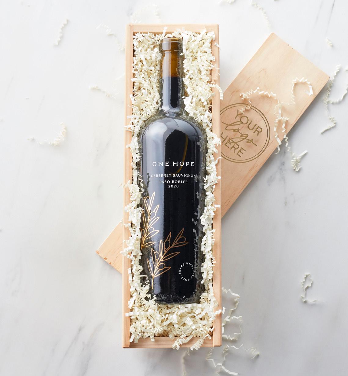 Single-Bottle Wood Box shown with Vintner Cabernet Sauvignon