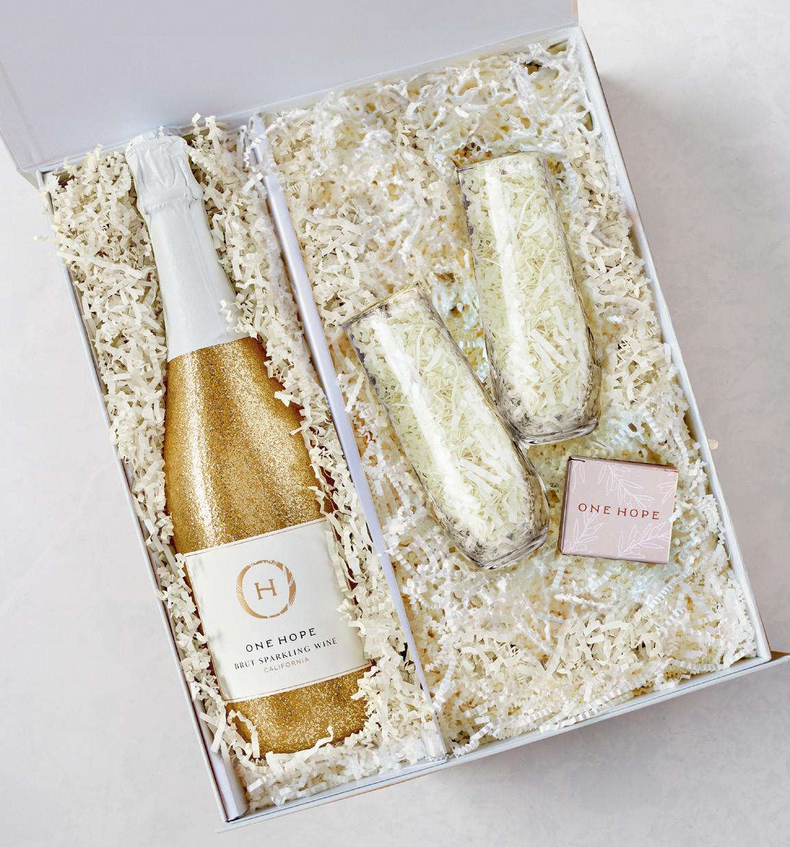Single-Bottle Magnetic Box shown with Etched Shimmer Sparkling Brut $ 74