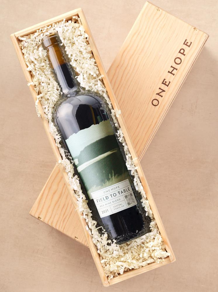Single-Bottle Wood Box shown with Field to Table Red Blend