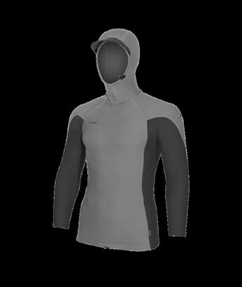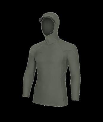 1. MODULAR CLOSURE: Interchangeable crew neck and hood