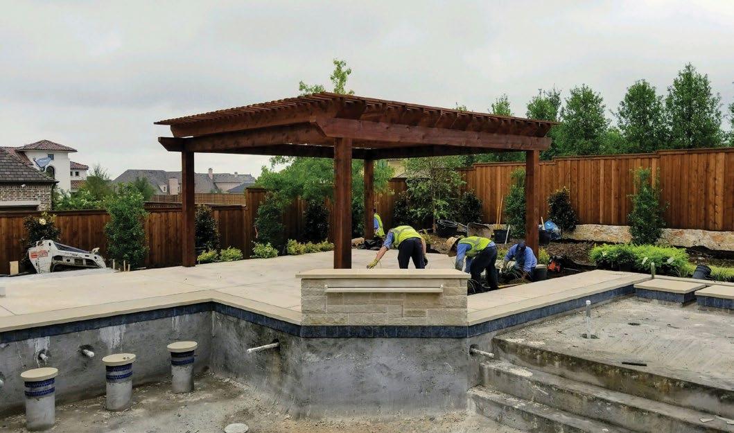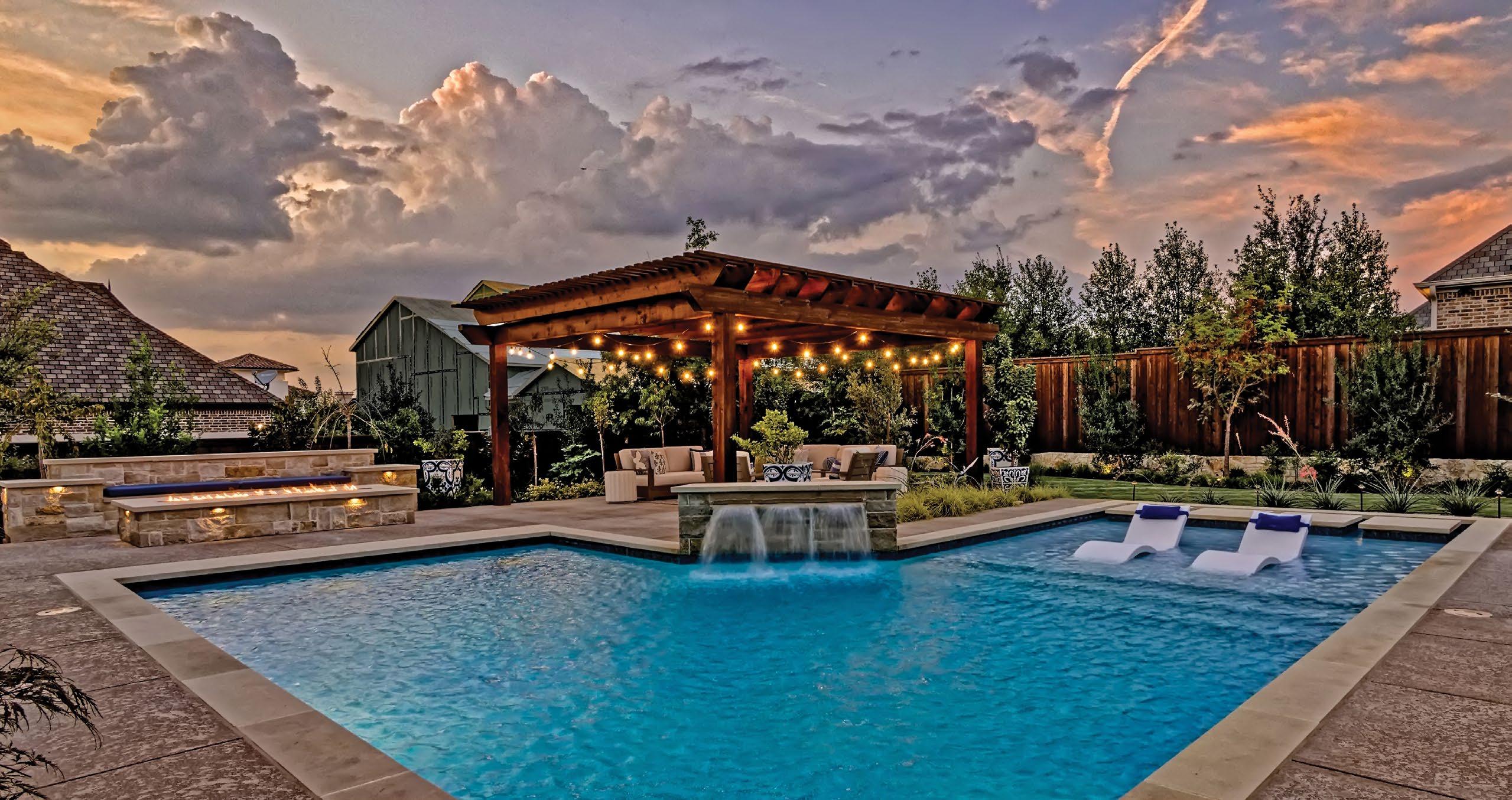 When Tim McAuliffe first stepped onto the Nelson property in Plano, Texas, the vision seemed straightforward: a complete landscape garden with meandering pathways, a firepit conversation area and a focal point pergola that would elevate the client’s outdoor space. However, as the project unfolded, it quickly became clear that this wouldn’t be just another standard build. The discovery of adding a pool on-site to the existing design led to an ambitious redesign that seamlessly integrated the pool into the project, ultimately turning a simple concept into a stunning outdoor living area that earned multiple accolades from the National Association of Landscape Professionals (NALP).