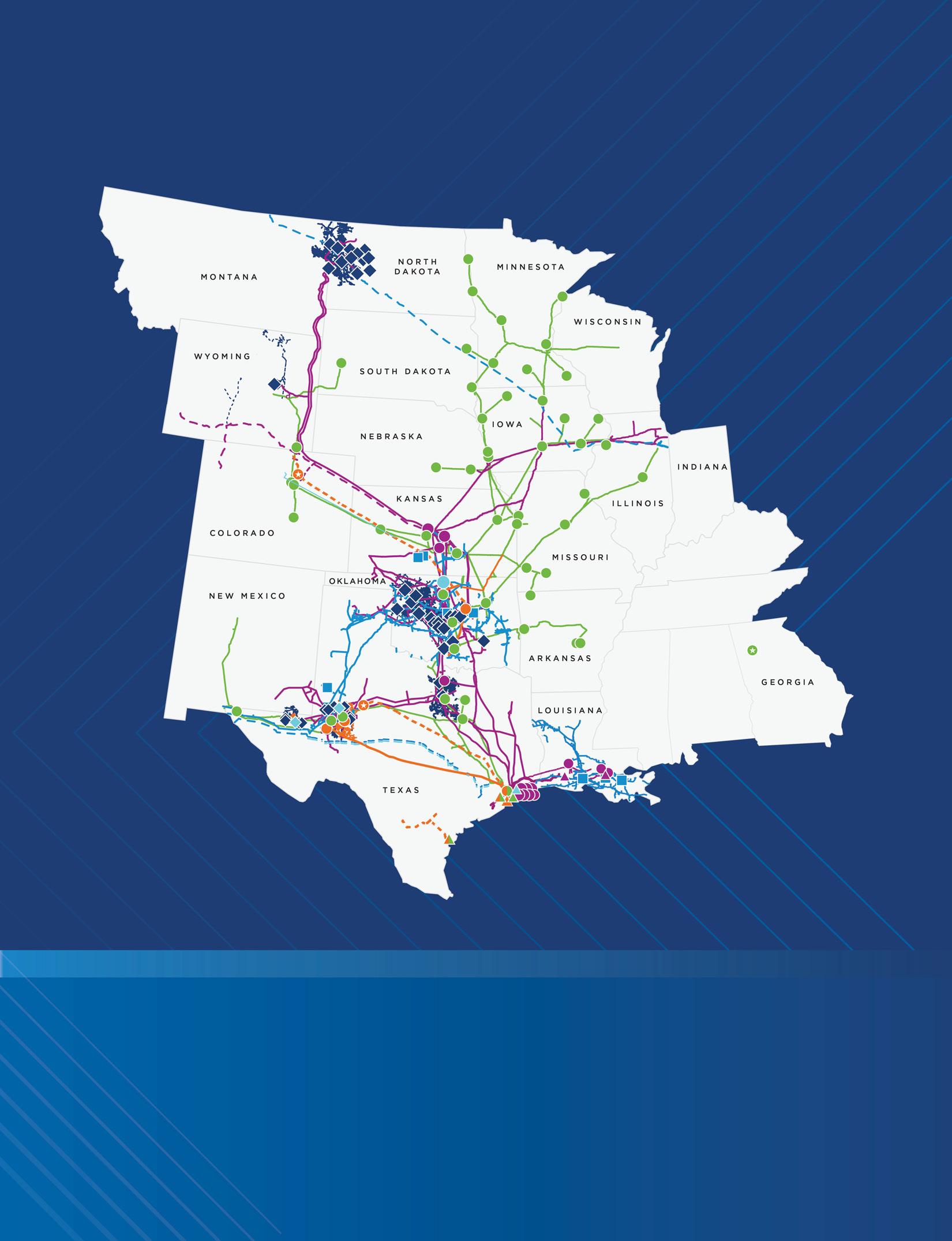 Energy demand continues to grow, and ONEOK is well positioned to play a critical role in an evolving energy landscape. In 2025, we continued to advance projects that expand our integrated system, strengthen market connectivity and position ONEOK to meet growing energy demand across key regions. Notable projects include: