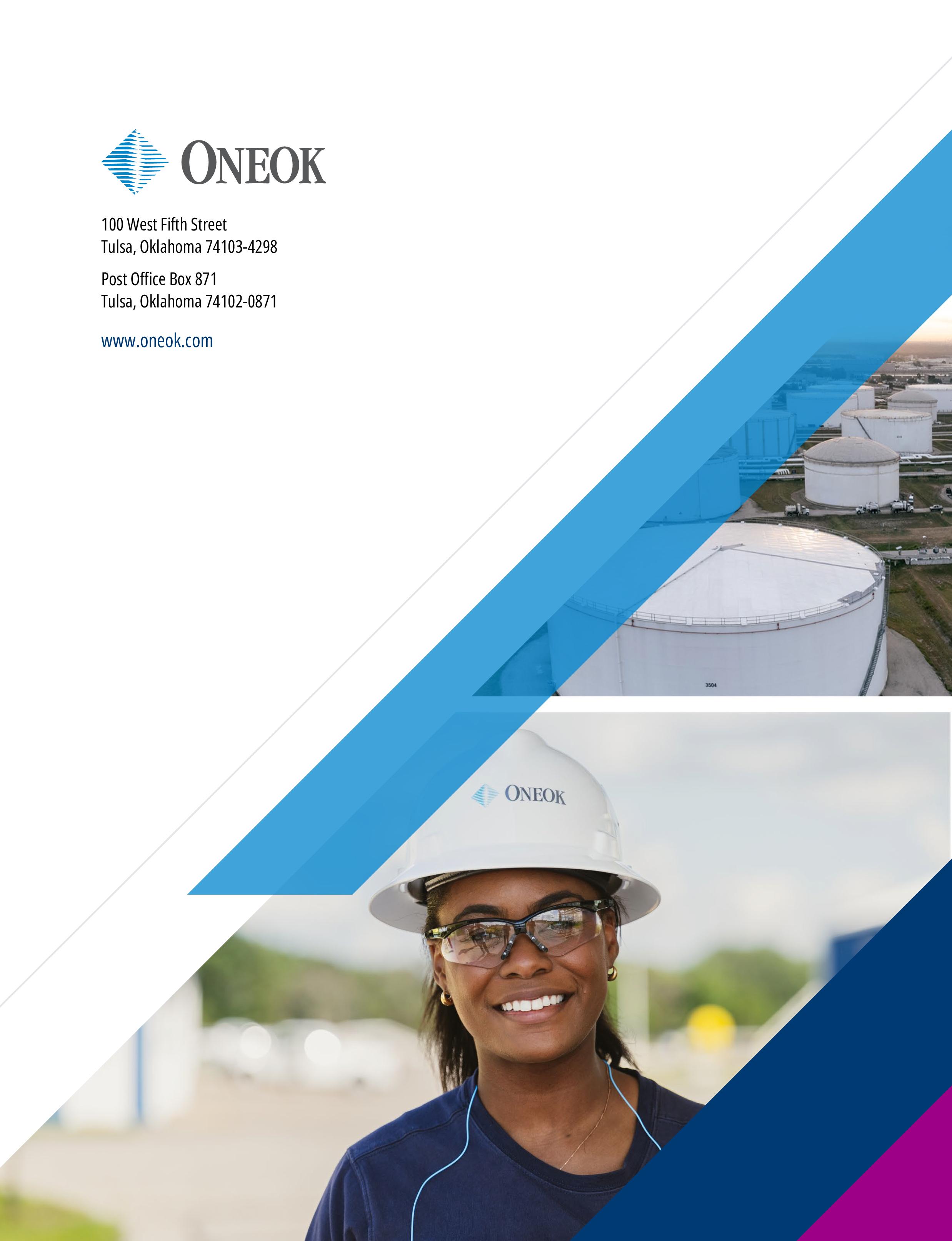 ONEOK is an S&P 500 company headquartered in Tulsa, Oklahoma. For information about ONEOK, visit the website: www.oneok.com