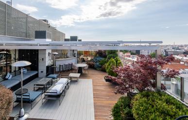 Dine and sip beneath the expansive blue sky once captured by Velázquez. One of Madrid’s most iconic rooftops, the Riu Hotel at Plaza de España offers sweeping views across the city and beyond - Royal Palace, Casa de Campo, financial towers, and distant mountains.