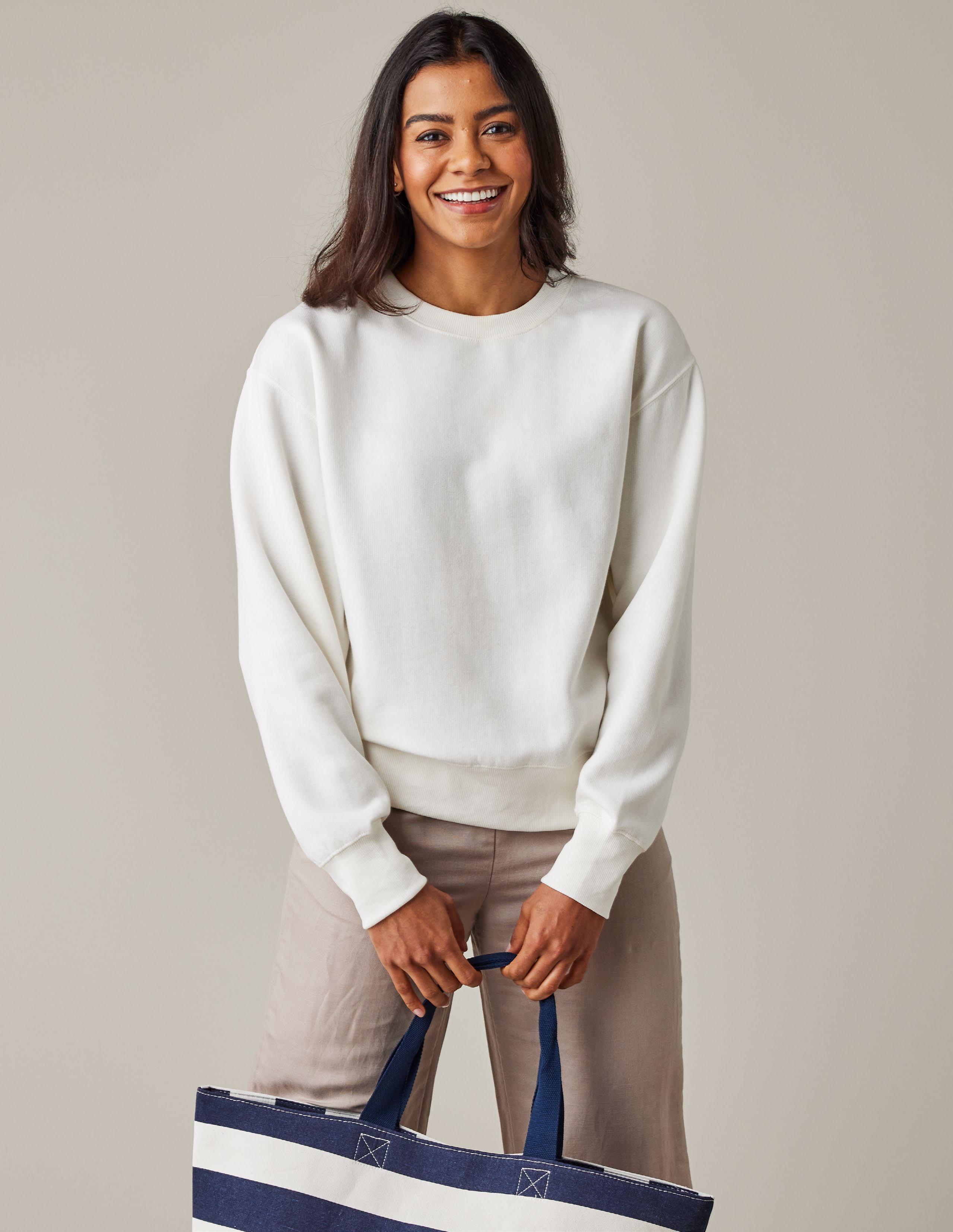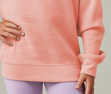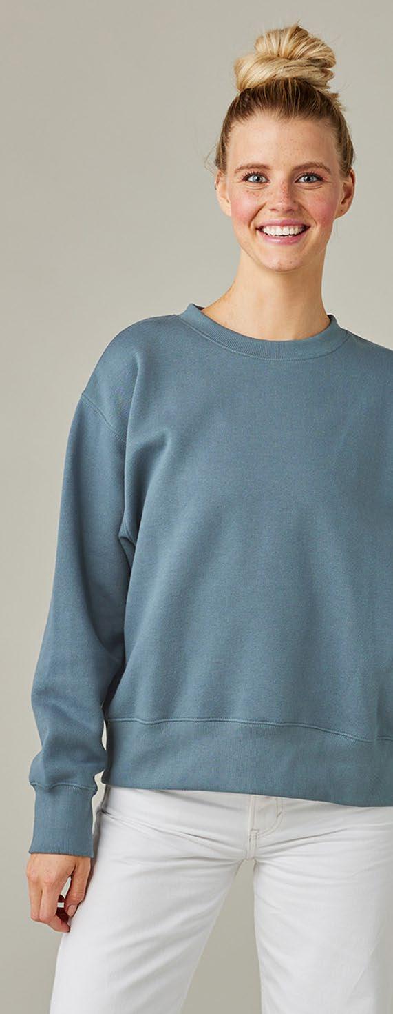 Tear away label. Rib neckline, cuff and sweep. Set-in sleeves. Inside back neck twill tape. Traditional silhouette