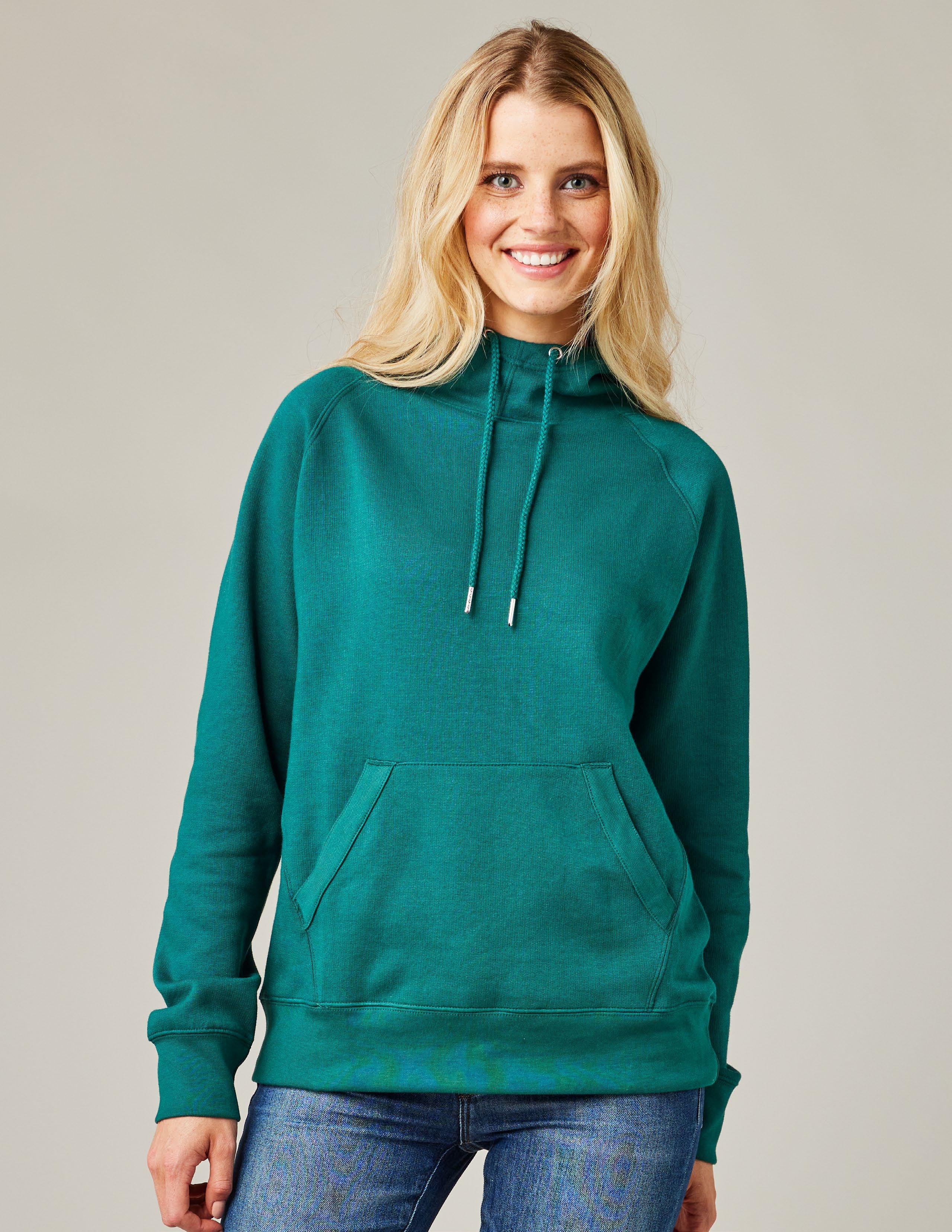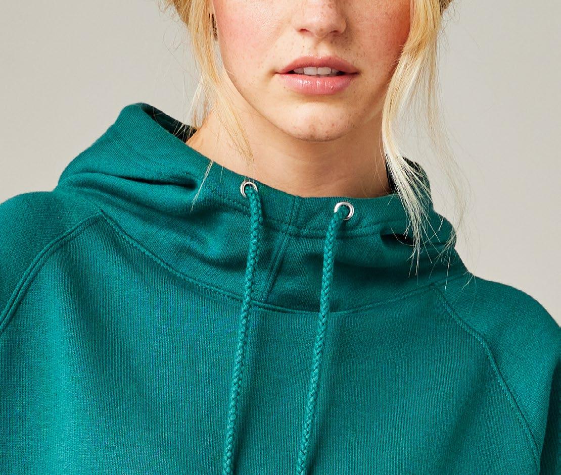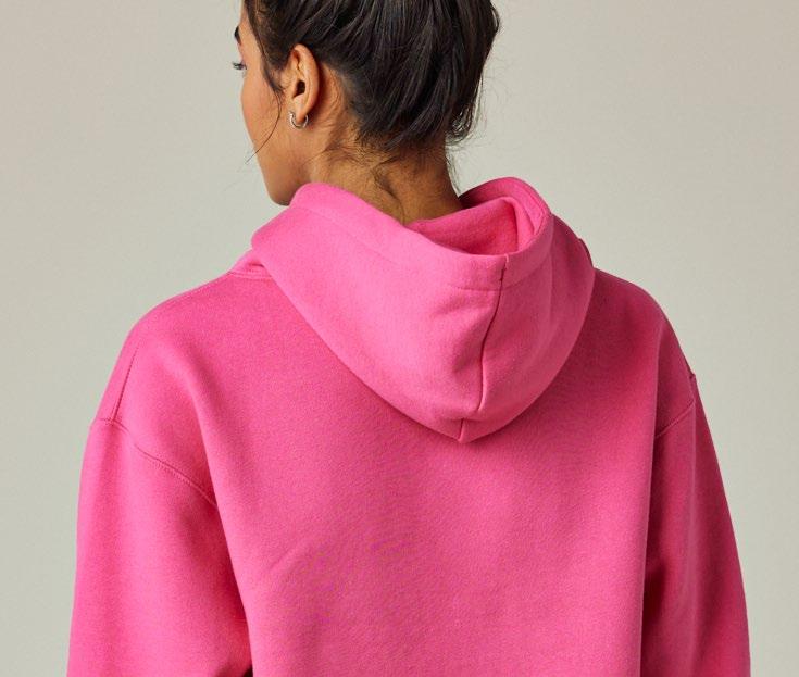 Tear away label. Jersey lined hood. Scuba neckline. Corded drawstrings with metal tips. Inside back neck twill tape. Back upper half moon detail. Raglan sleeves. Rib cuff, sweep, pocket opening. Diagonal side seam. Traditional silhouette.
