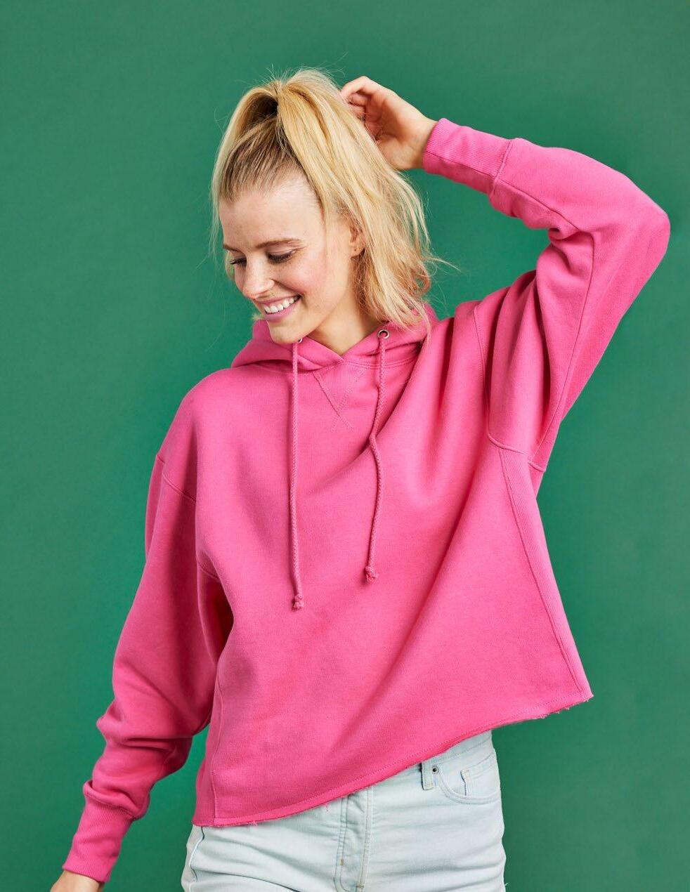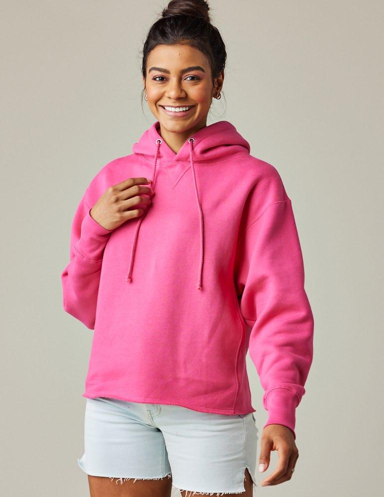 Tear Away label. Double lined hood. Corded drawstrings. Inside back neck twill tape. V-Knotch inset at neckline. Drop shoulder, set in sleeve. Extended Rib cuffs. Side Gussets with Rib fabrication. Open bottom sweep with single needle stitch. 80% Cotton, 20% Polyester. 350 gsm. 10 oz. Heavyweight Fleece