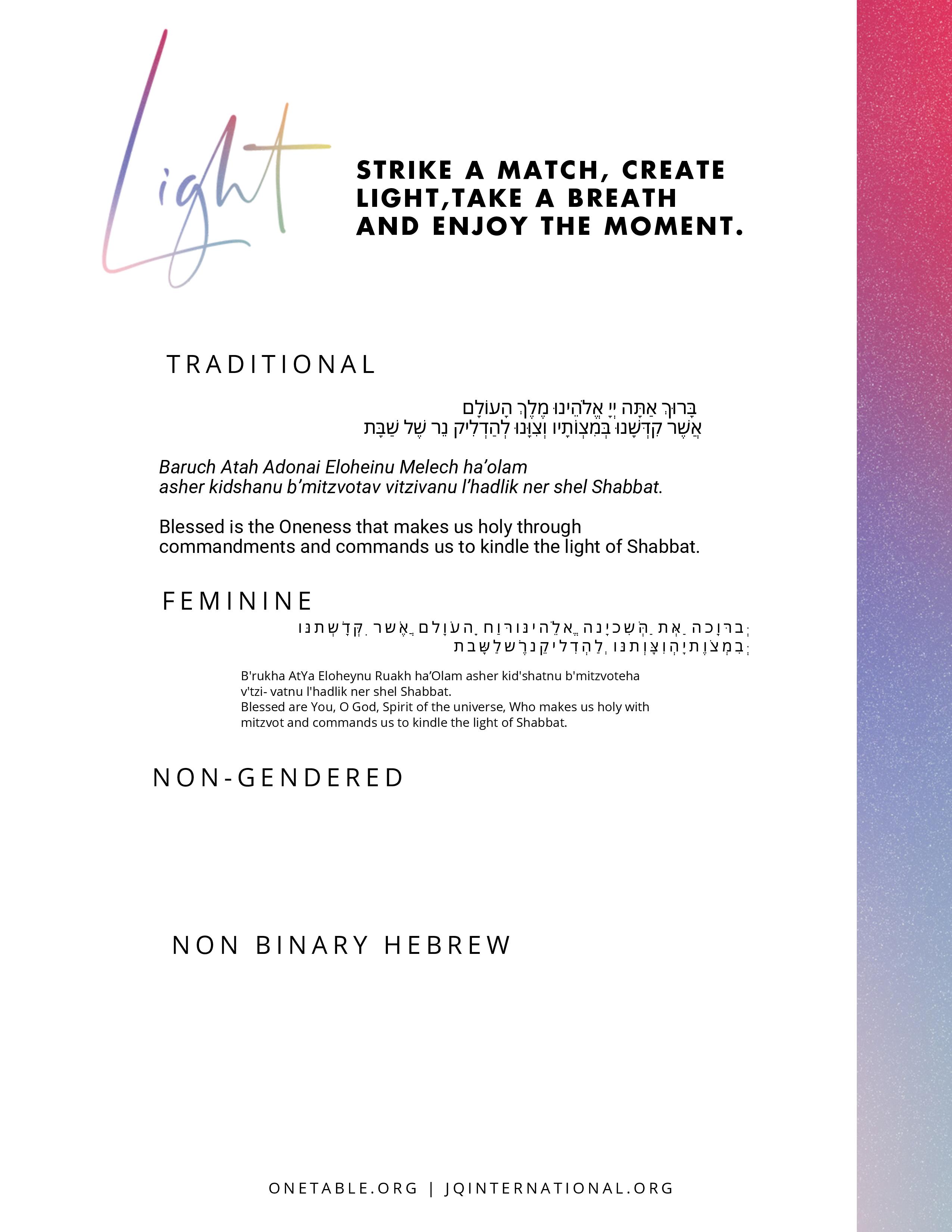 OneTable and JQ International bring you this Pride Shabbat guide centered on the Jewish value of V’ahavta L’reacha Kamocha: love your neighbor as yourself.