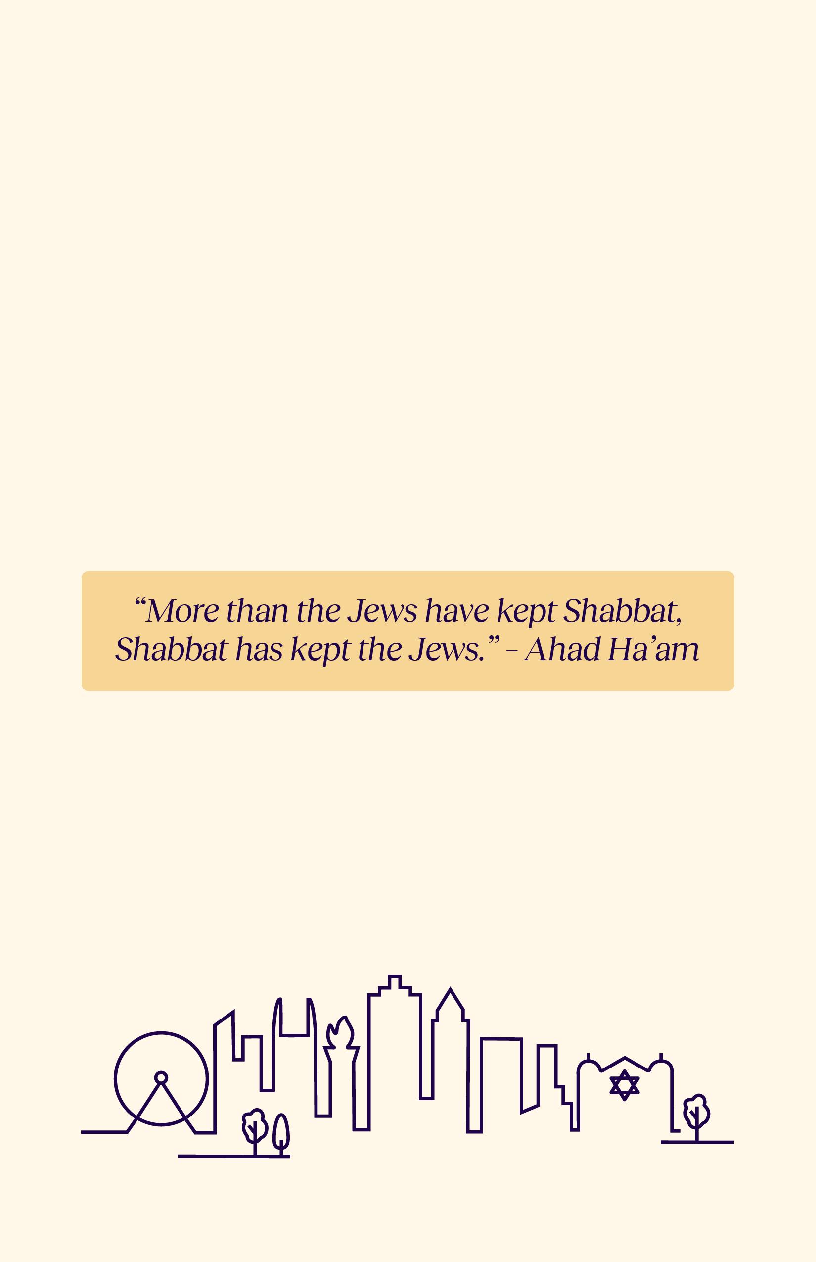 This guide is about finding yourself in Shabbat. Throughout it, you'll find introductions for each Friday night ritual, blessings in Hebrew and English, thoughts to consider, and reflections from Atlanta community leaders. We hope you use this guide as just that—a guide. We know that each family, group of friends, and Shabbat table looks a little different, each bringing their own flair to Shabbat practice. Use this guide as enrichment and inspiration while holding on to the unique qualities that make your Shabbat dinner yours.