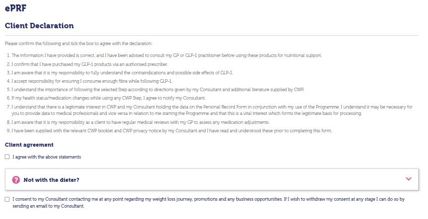 For new dieters looking to start on plan who are taking GLP-1 medication, simply click to start a new ePRF and select the GLP-1 tick box in the Medications list.