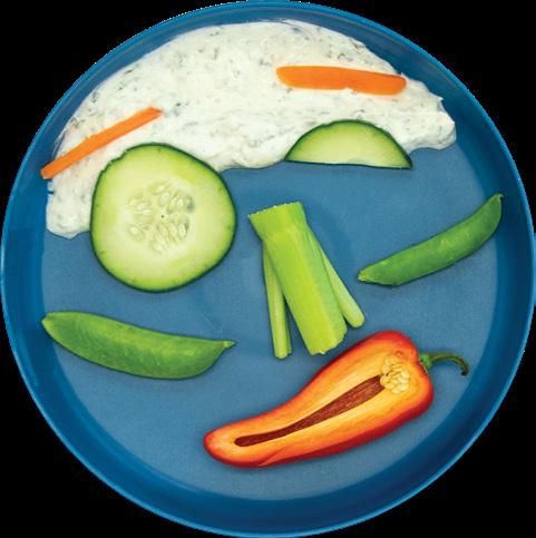 Preparación: 1. Cortar los vegetales en formas pequeñas y ponerlos a un lado. 2. Preparar el aderezo casero de yogur. 3. Colocar los vegetales en un plato para hacer ojos, pelo, nariz, oídos, cejas y otras formas. ¡Se creativo! 20 Min | 4 Porciones (104g)Tamaño de la porción Cantidad por porción porciones por receta Información Nutricional Calorías 70 Grasa Total % Valor Dairio* 3% 5% 2% 2g Grasa Saturada 1g Grasa Trans 0g 5mg 55mg 11g Fibra Dietética 2g Azúcares Totales 4g 0% 6% 6% 6% Incluye 0g Azúcares Añadidos 4g Vitamina D 0mcg Calcio 80mg Hierro 1mg * The % Daily Value (DV) tells you how much a nutrient in a serving of food contributes to a daily diet. 2,000 calories a day is used for general nutrition advice. 2% 4% 7% 0% Colesterol Sodio Carbohidrato Total Proteína Potasio 307mg Consejo: Esta actividad es una excelente manera de usar los productos sobrantes en el refrigerador, ¡y así no despercidiar la comida! Cómo preparar Aderezo Casero de Yogur Caras Graciosas Hechas de Vegetales