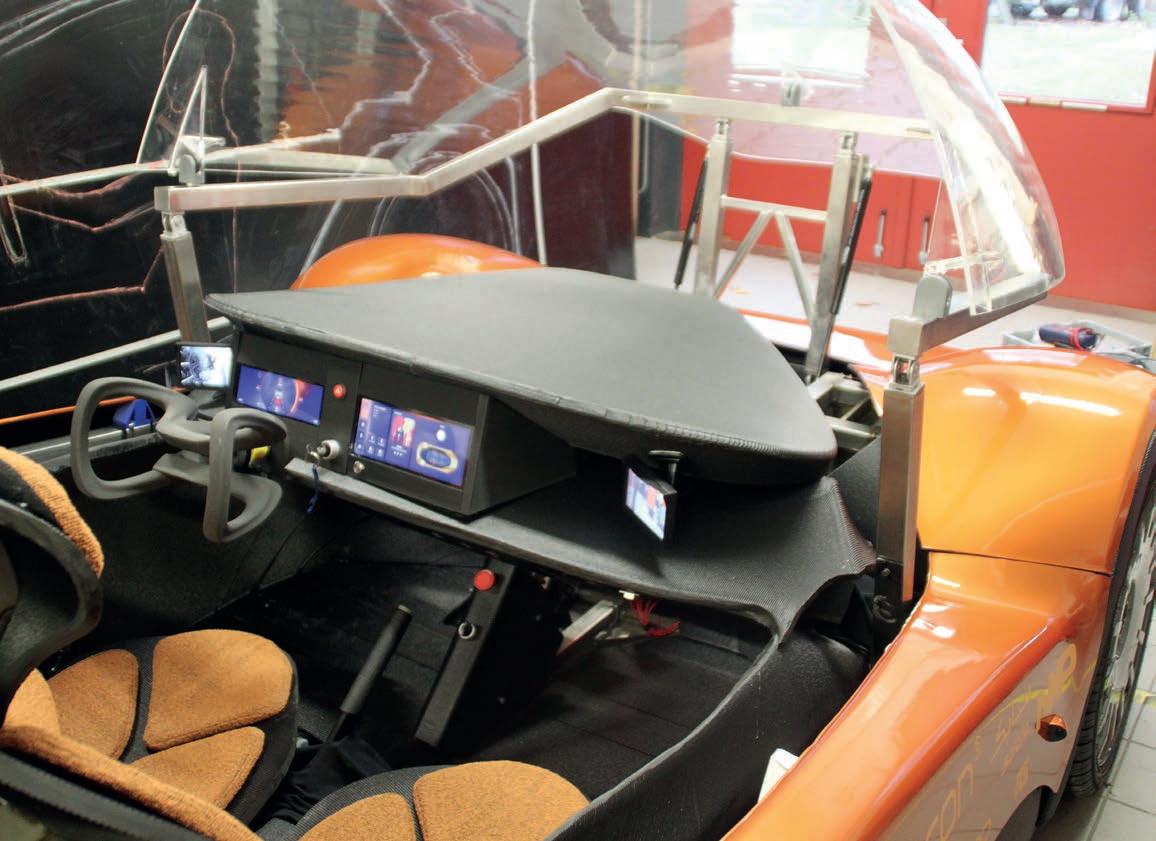 zoals Grinsven en Frints de prachtig gestroomlijnde, straaljagerachtige koepeldelen van 100% PMMA met gevoel voor understatement noemen, sluiten bijvoorbeeld niet aan: er zit een spleet van een paar centimeter tussen het voorste en het achterste deel, waardoor je bepaald nat zal worden op een regenachtige dag. “Het is meer een showmodel”, zegt Frints. “Wij willen de industrie inspireren, laten zien dat er van alles mogelijk is.”