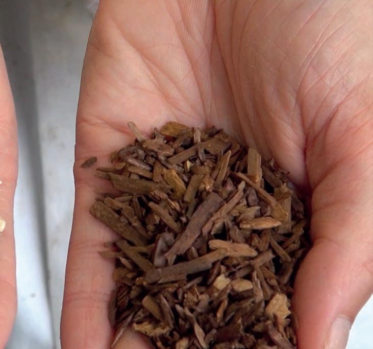 voortdurend in vochtige aarde ligt, zal het gaan desintegreren in water en CO2. En als je het in de tropen wilt toepassen, zal je de houtsnippers eerst moeten verduurzamen. Maar het hars kan ertegen.”