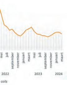 Groei David Kemps, sector banker industrie bij ABN AMRO: ‘Voor het eerst sinds twintig maanden groeit het aantal nieuwe orders voor de industrie. Respondenten geven aan dat deels door nieuwe (Europese) projecten en het verbeterde economische klimaat de vraag naar industriële producten is gestegen. De Nevi PMI stijgt hierdoor van 49.3 in februari naar 49.7 in maart 2024. De score is nog maar een fractie lager dan de ‘neutrale score’ 50 en duidt daarmee op een zeer licht afnemende bedrijvigheid.’