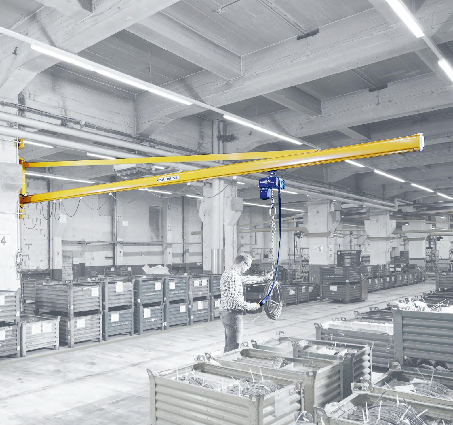 Demag zwenkkranen zorgen voor een hoge efficiëntie en een verbeterde operationele veiligheid op de werkvloer. Onze kolom- en wandzwenkkranen kunnen ingezet worden voor het verplaatsen van lasten van 80 kg tot 10 ton. Met Demag zwenkkranen kunt u allerlei soorten werkmaterialen snel en gemakkelijk vervoeren en nauwkeurig positioneren. Kijk voor meer informatie op www.demag.nl/zwenkkraan