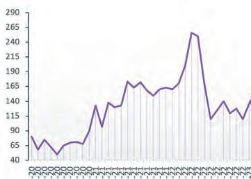 AMSTERDAM • Het aantal faillissementen in Nederland zal naar verwachting dit jaar met 38 procent stijgen. Hoewel deze toename minder groot is dan vorig jaar (48%), blijft het aantal faillissementen nog boven het niveau van vóór de coronacrisis.