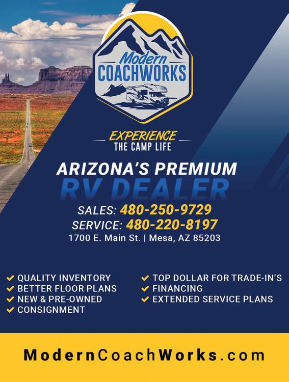 Go to the “Join Our Team” page at agspub.com or call 877-518-1989 Do you like this guide? Wi$h to join our team? ATTENTION FULL-TIME RVERS SEEKING $ALE$ REP TEAMS The Leader in the Guest Services Guide Industry for over 35 Years Earn money while traveling Highest commission in the industry Complimentary camping Sell local print & internet advertising to an established customer base Supportive of ce provides assignments (480) 703-6571 (480) 703-6571 ASAP MOBILE RV SERVICE LLC Est. 2008 THE DEALER ALTERNATIVE JOE WILKINSON, Owner Specializing in ALL Coach and Trailer Repairs Accept most Warranties and Insurance asapmobilervservice.com Licensed & Insured 7 9 9 8