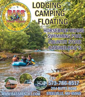 10 miles E of Steelville on Hwy 8, turn left at Bass’ River Resort sign. SETTING: 3 miles of riverfront, rolling Ozark hills, shady, open, level sites. FAC: RV sites w/FHU 30/50 amp ser, large variety of lodging, multiple shower houses, group sites, large event center. SVCS: Large store, food, dump station, laundry. REC: Canoeing, kayaking, rafting, tubing, horseback riding, pool, playground, and more. All waiting for you to come and enjoy! EMAIL: reservations@bassresort.com OPEN: Year Round.