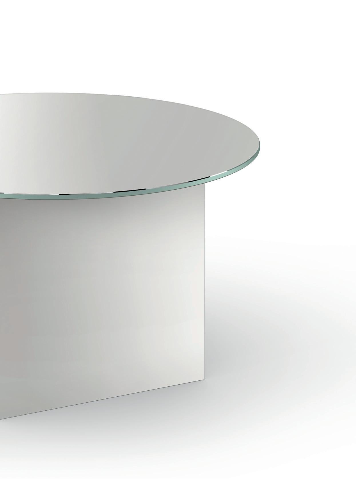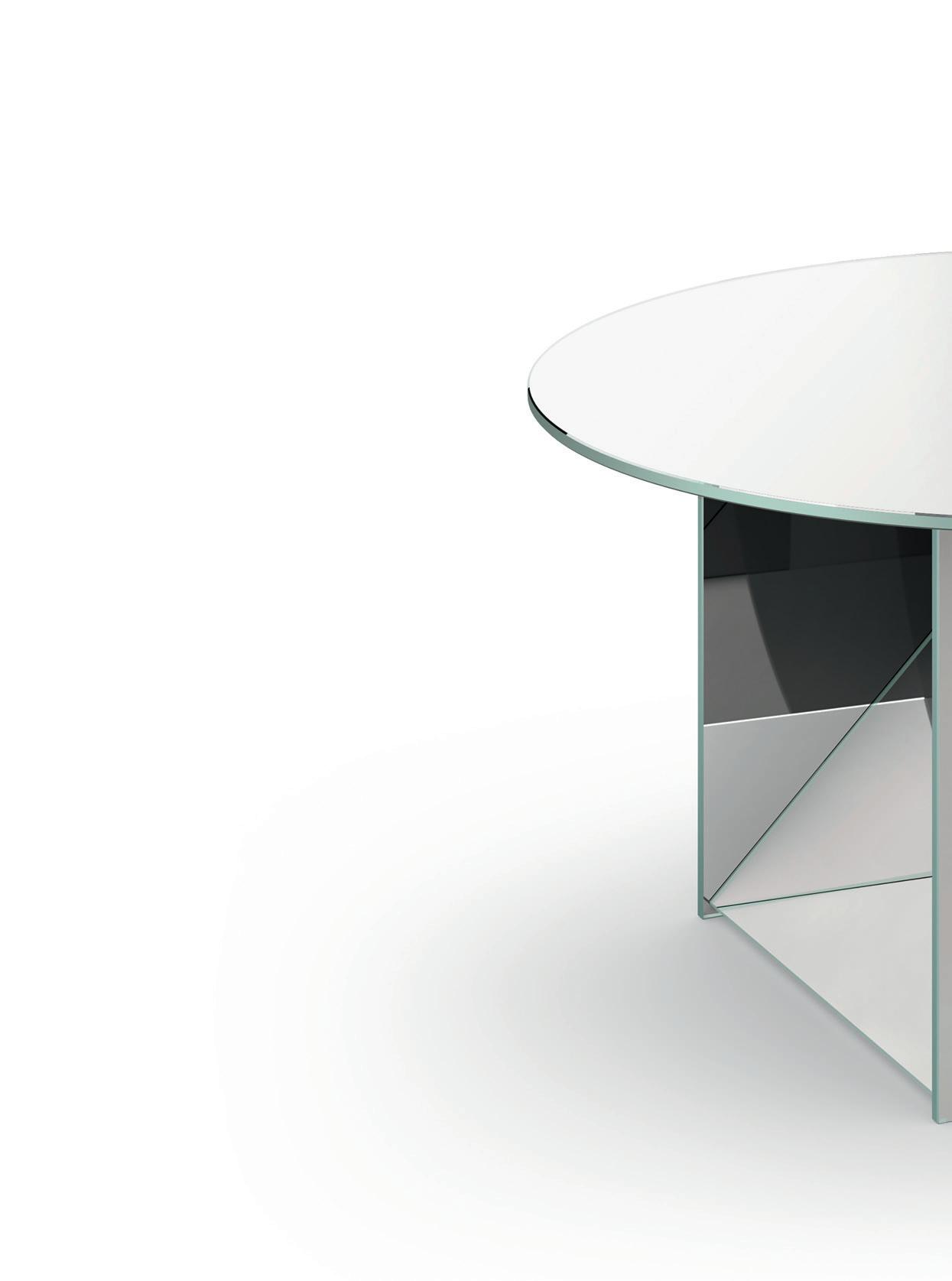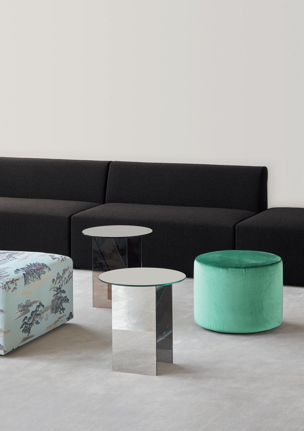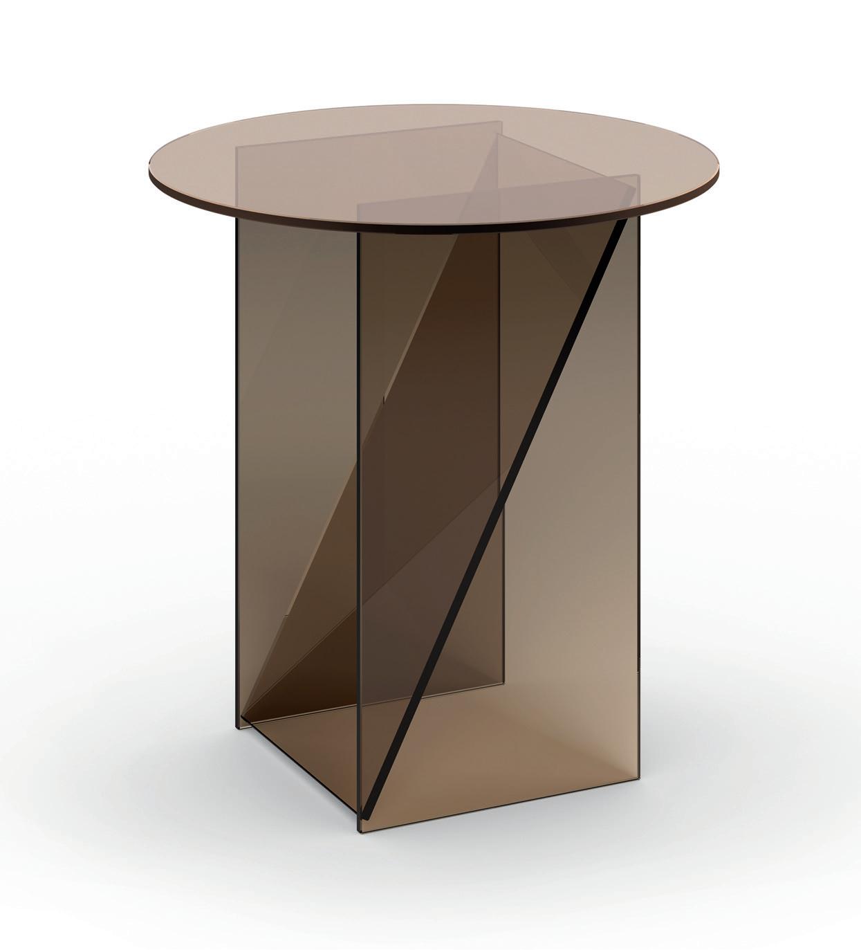 Inspired by Art Deco jewelry and industrial glass developments of the time, side tables KAISA illustrate sculptural elegance with abstractions in faceted and linear forms. Designed by industrial designer and goldsmith Annabelle Klute, KAISA side tables are scaled in small and medium sizes and are offered in black, mirrored and brown glass. Exploring different combinations and gradients of translucency, KAISA presents a distinct character from each angle, drawing the eye to perceptive details and reflections.