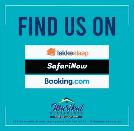 Bladsy 33 SOCIAL MEDIA Marketing MMS N.Cape Online Media Company Proud Member N.C. Online Media Company IN ADVERTISING & MARKETING SPECIALISTS 1. Established 2016 2. Proven Track Record 3. Currently Serving more Than 50 Businesses 4. The Most Cost Effective Way to Speak Directly to Your Clients and Customers 5. Reach 500 000 People in the Northern Cape for R250/week “OurTeamofYoungI.T.Professionals interact and Engage with Twitter, Facebook, Instagram, WhatsApp, & TelegramDAILY...!” BRANDS THAT IGNORE SOCIAL MEDIAWILLDIE IT’S THAT SIMPLE Northern Cape Comfortable in the DIGITAL WORLD Mari 079 431 7354 Louise 060 701 6078 Bou in 2023 083 603 2958 Ruan 082 398 6315 Vragmotors, sleepwaens,motors: Meganieseprobleme metuvoertuie, benodiguherstelwerk of‘ndiens viruvoertuig ofsleepwa. UPINGTON Oom Benna’s Gastehuis Brandvlei “ ” Rustigheid se Moses Body Stress Release UPINGTON CONTACT Heidi Botha 072 8248 753 Vrydag 13 Januarie 2023